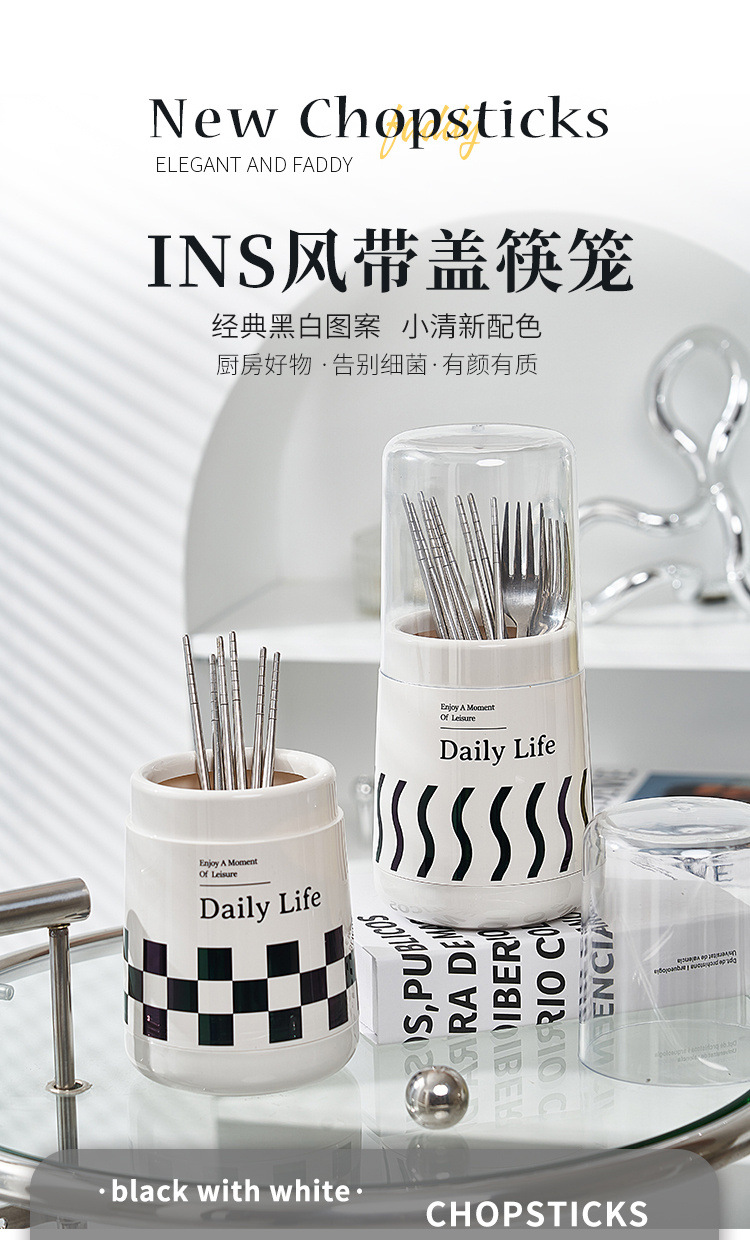 箸立て家庭用創意インスタ水切り箸籠キッチン食器蓋付き収納棚箸籠収納箸入れ