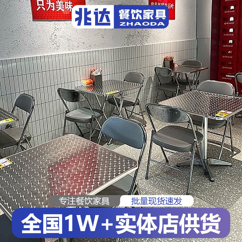 韩式烧烤店餐桌椅网红工业风火锅店折叠桌子椅子不锈钢软包折叠椅