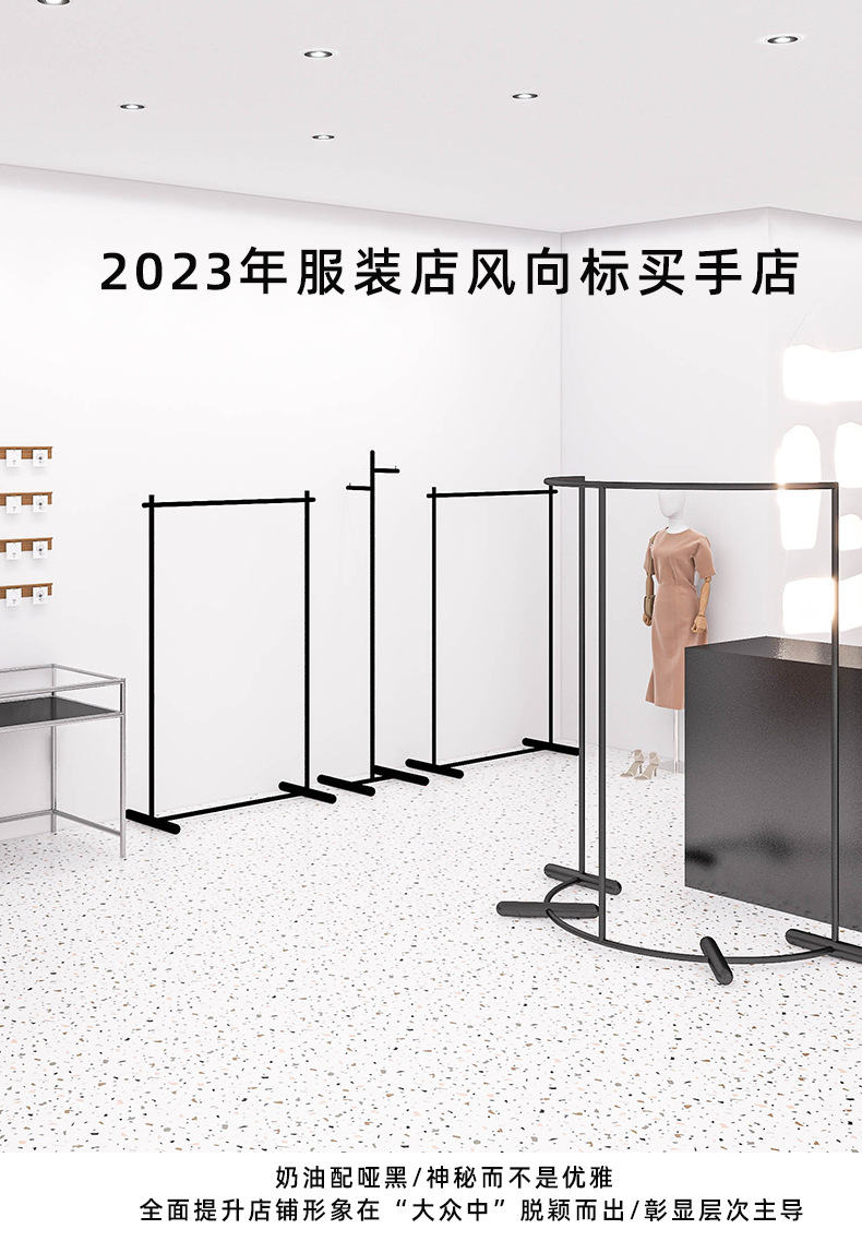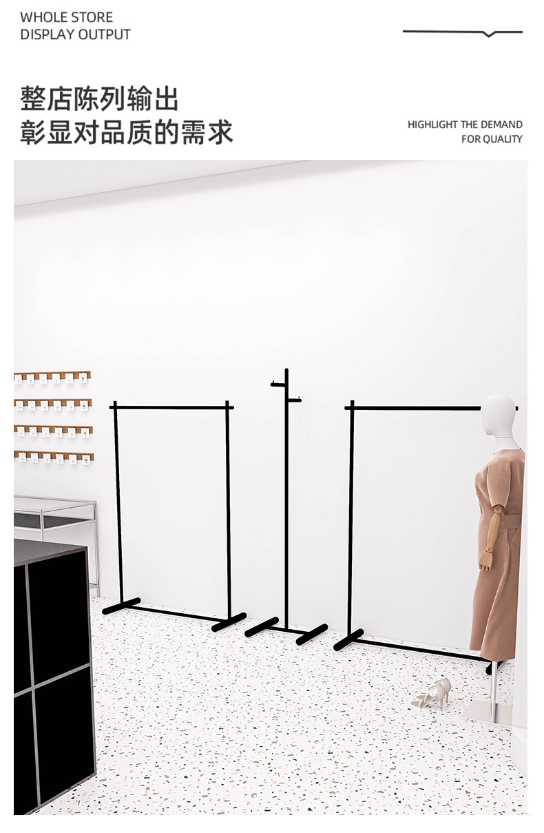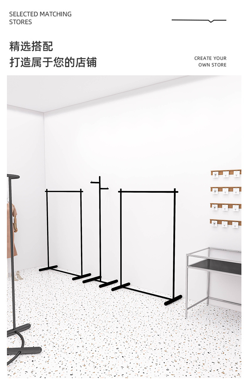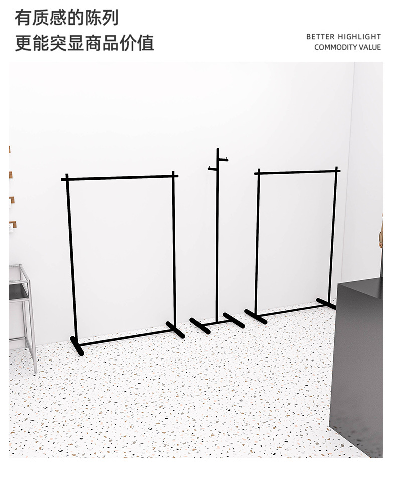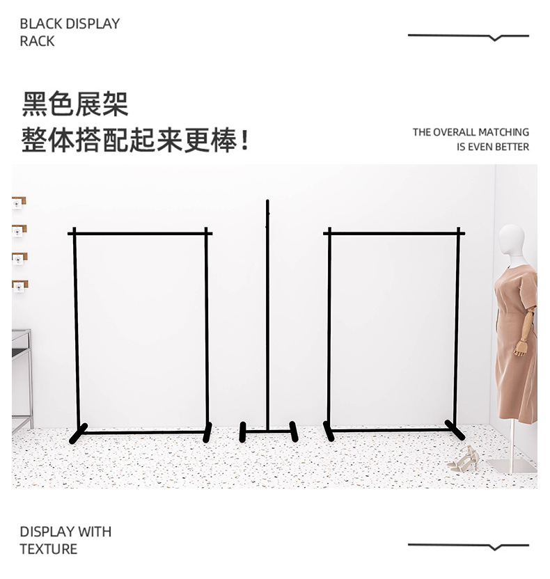 黒い棚ハンガー鉄芸ドレス中島展示棚陳列棚洋服店婦人服展示棚床置き式