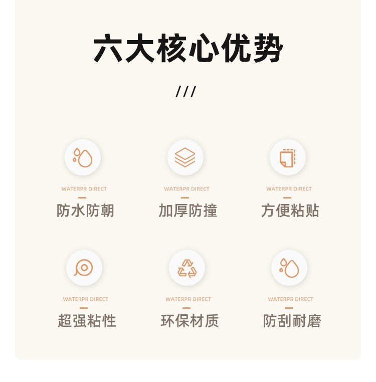 模造タイル防水蹴り線リフォームシール自己粘着壁貼り大理石地脚線純色木目ウエスト線