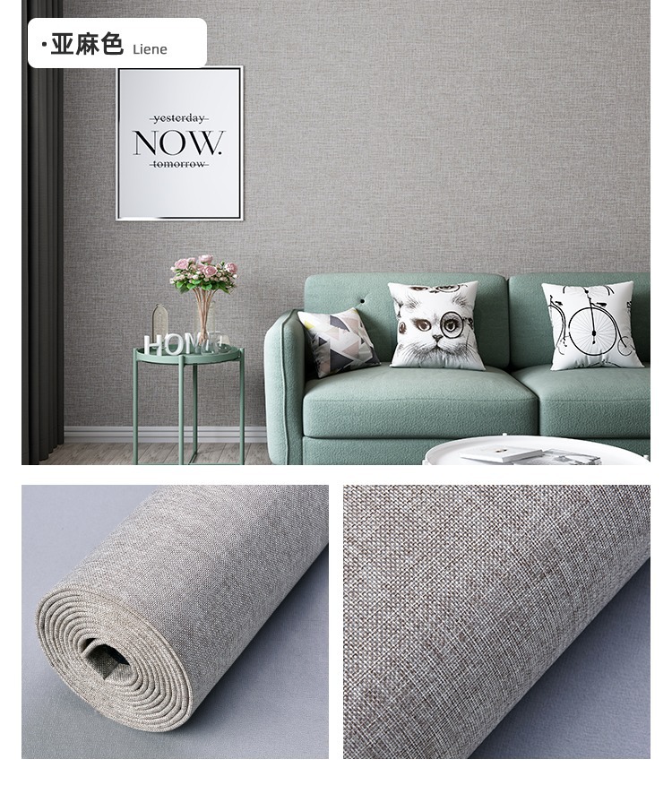 リネン壁装材シームレス家全体壁紙自己粘着防水防湿寝室のテレビの背景の壁のステッカー装飾醜い壁紙