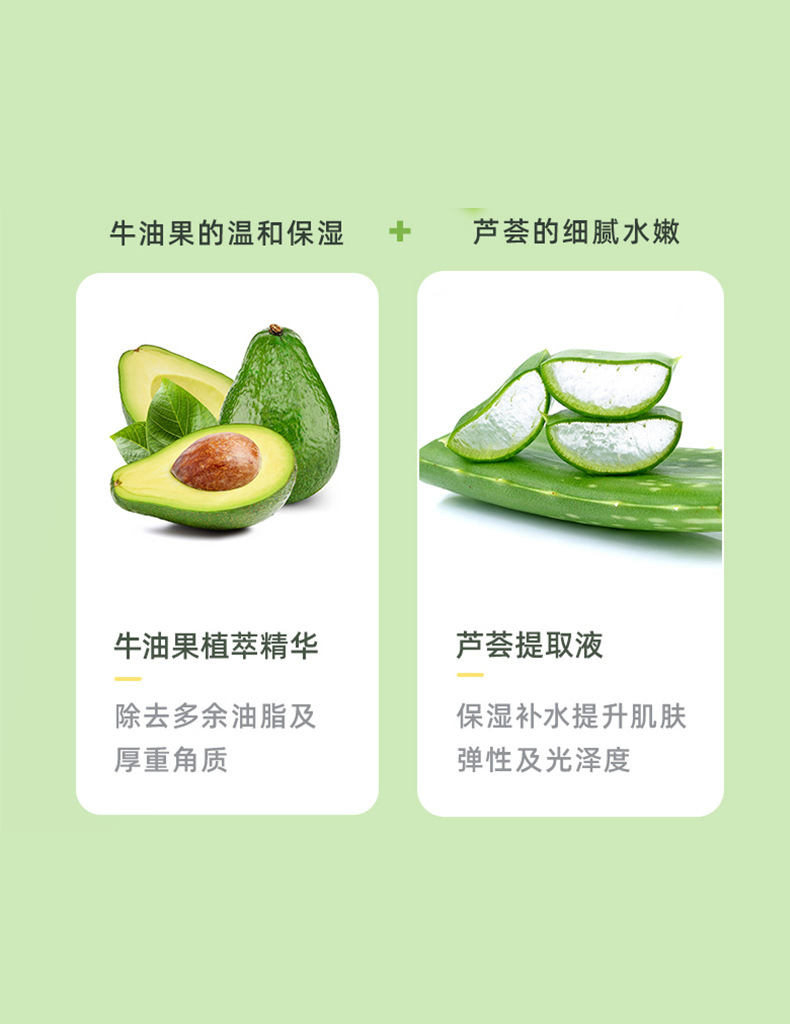 牛油果は化粧を落として濡れます。使い捨ての顔は温和です。