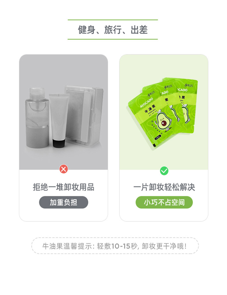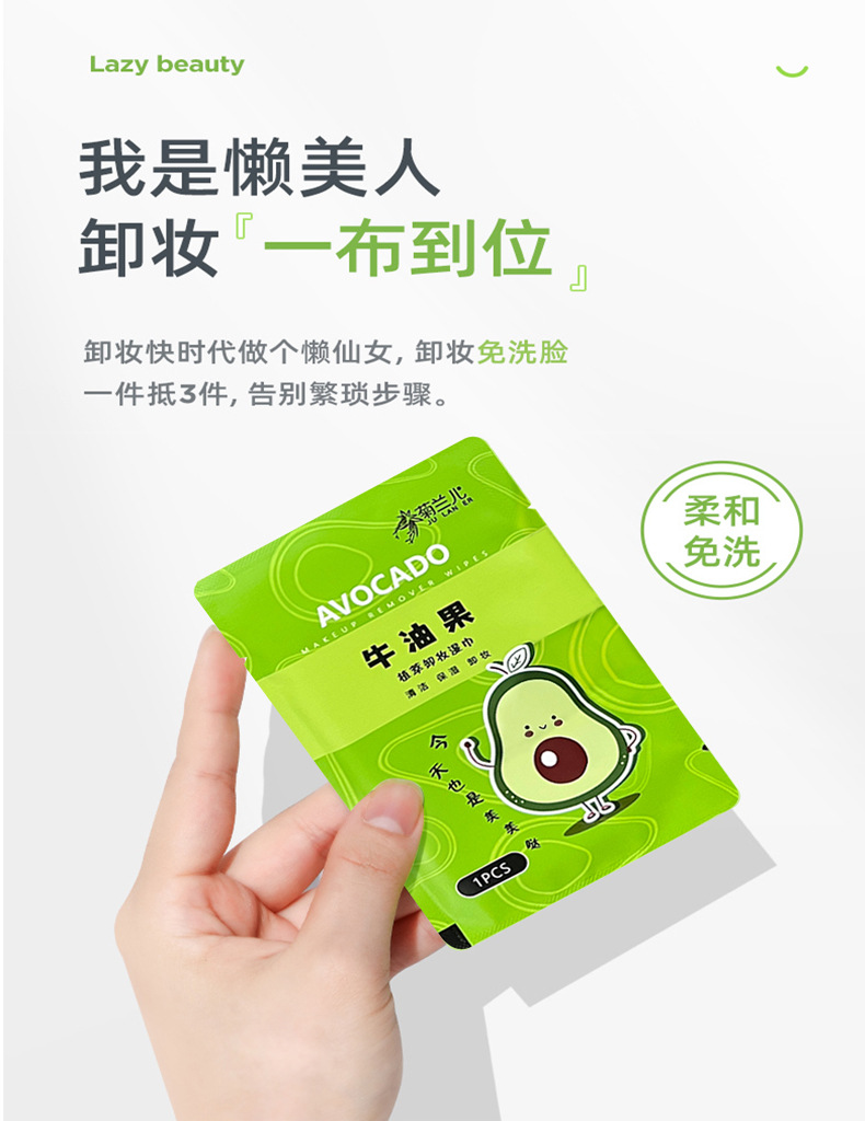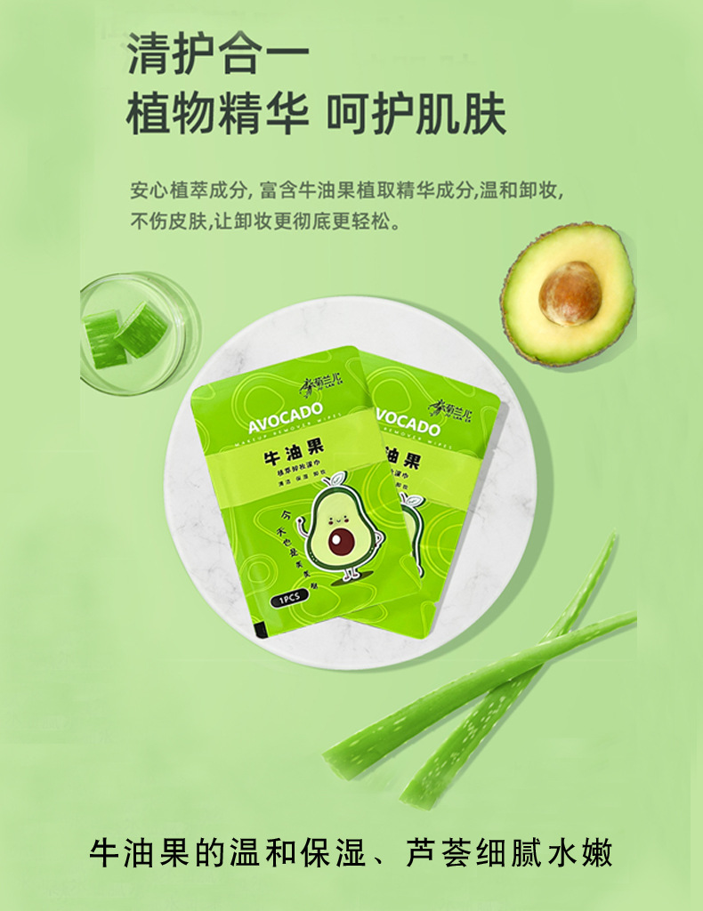 化粧落としウェットティッシュ独立包装牛油果クレンジングタオル水使い捨て携帯小包植物エキス化粧落としウェットティッシュ