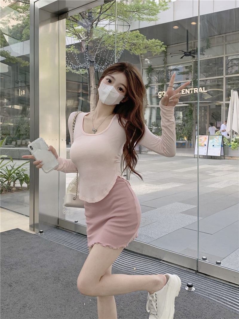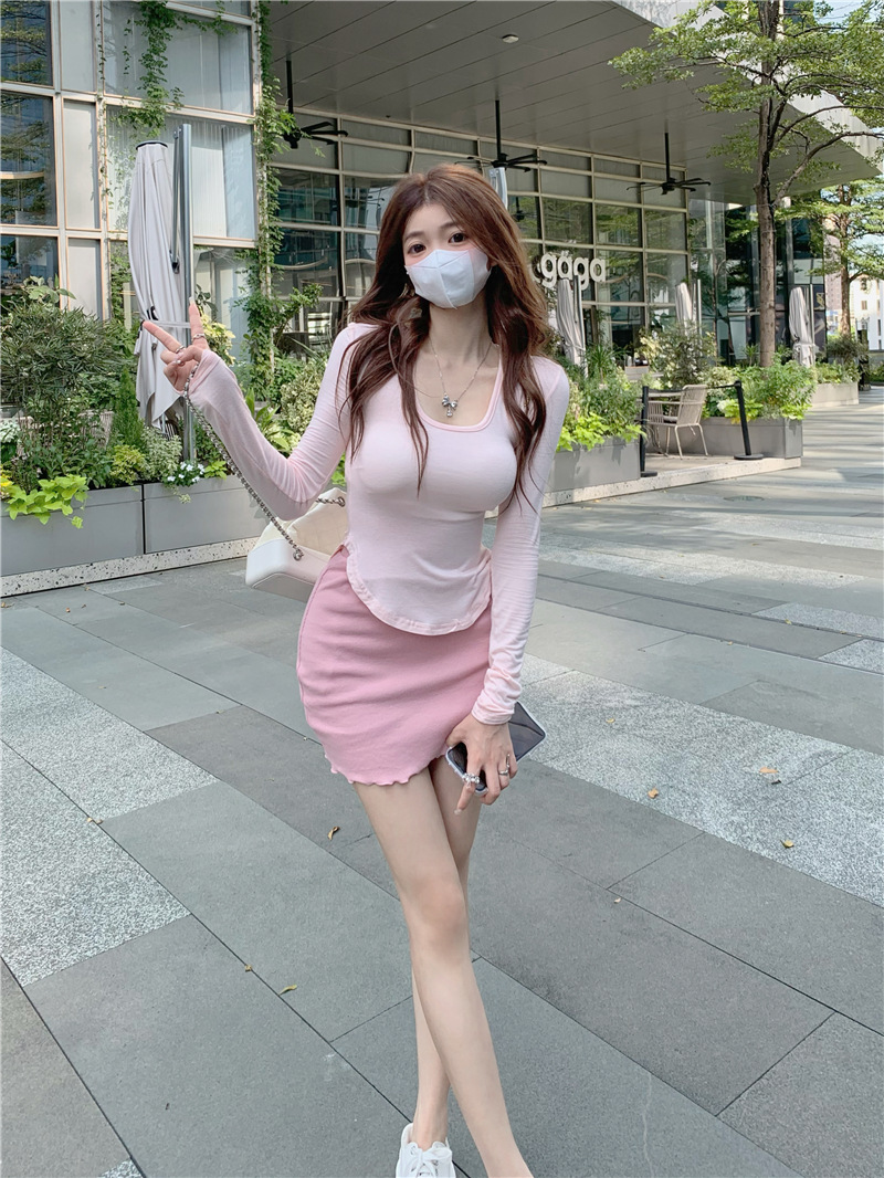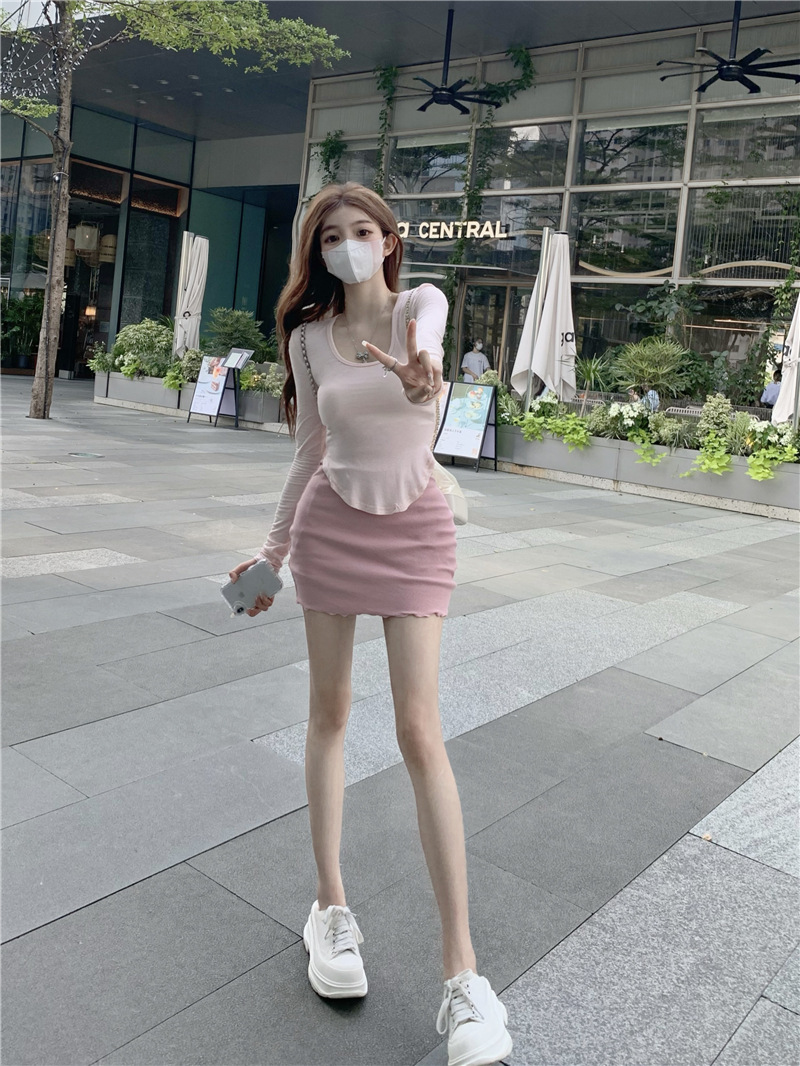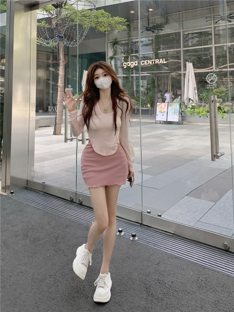 フランス式純欲風ギャルのセクシーな長袖tシャツの上着は夏の新型で痩せています。