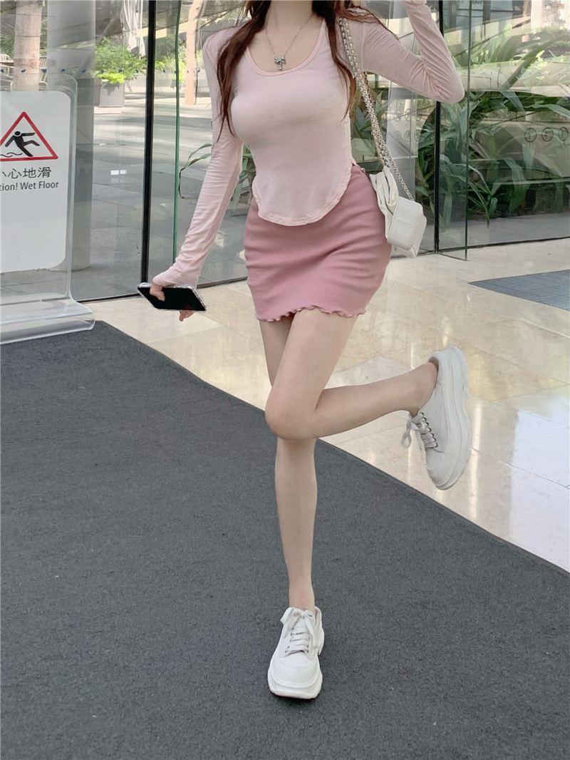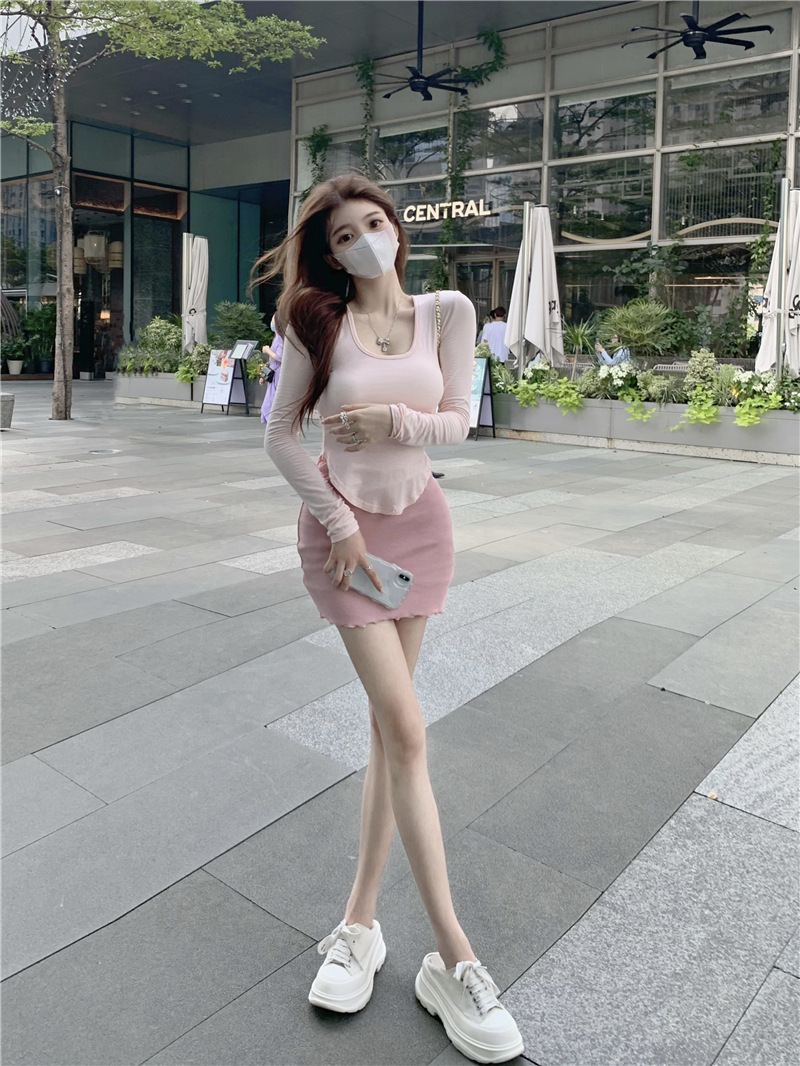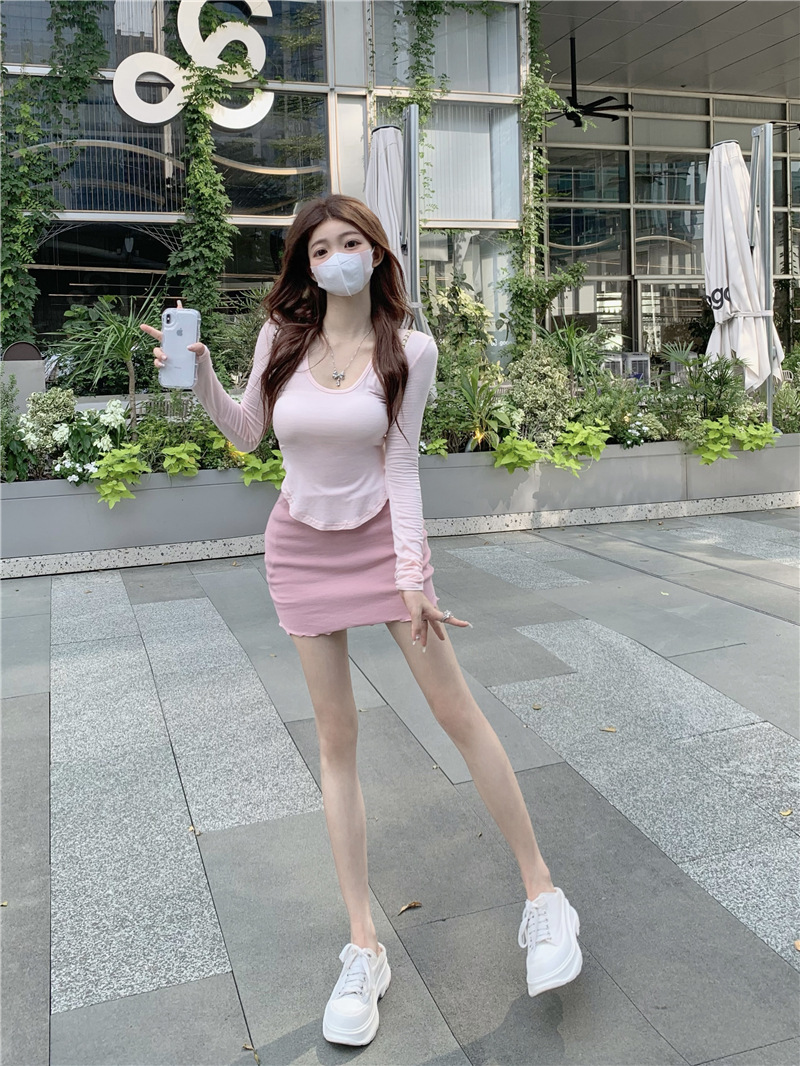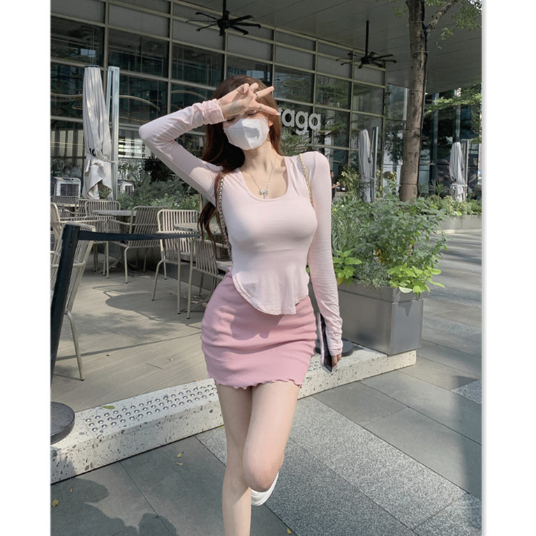 フランス式純欲風ギャルのセクシーな長袖tシャツの上着は夏の新型で痩せています。