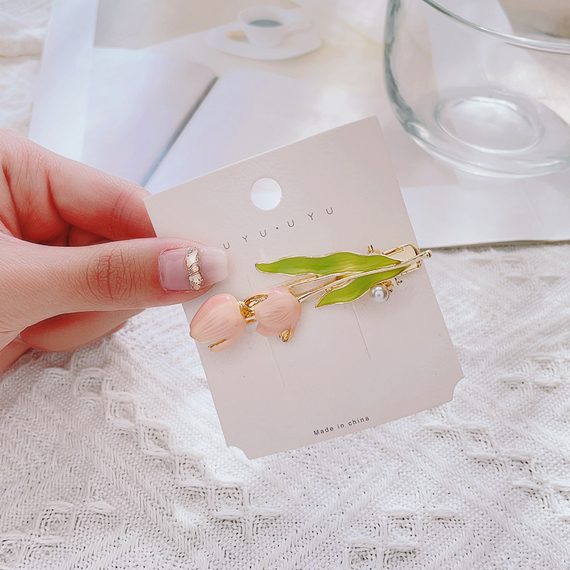 真珠のチューリップのヘアクリップ鈴蘭の前髪クリップのサイドヘアピンの高級感森系のサイドクリップの髪飾りメーカーの卸売り