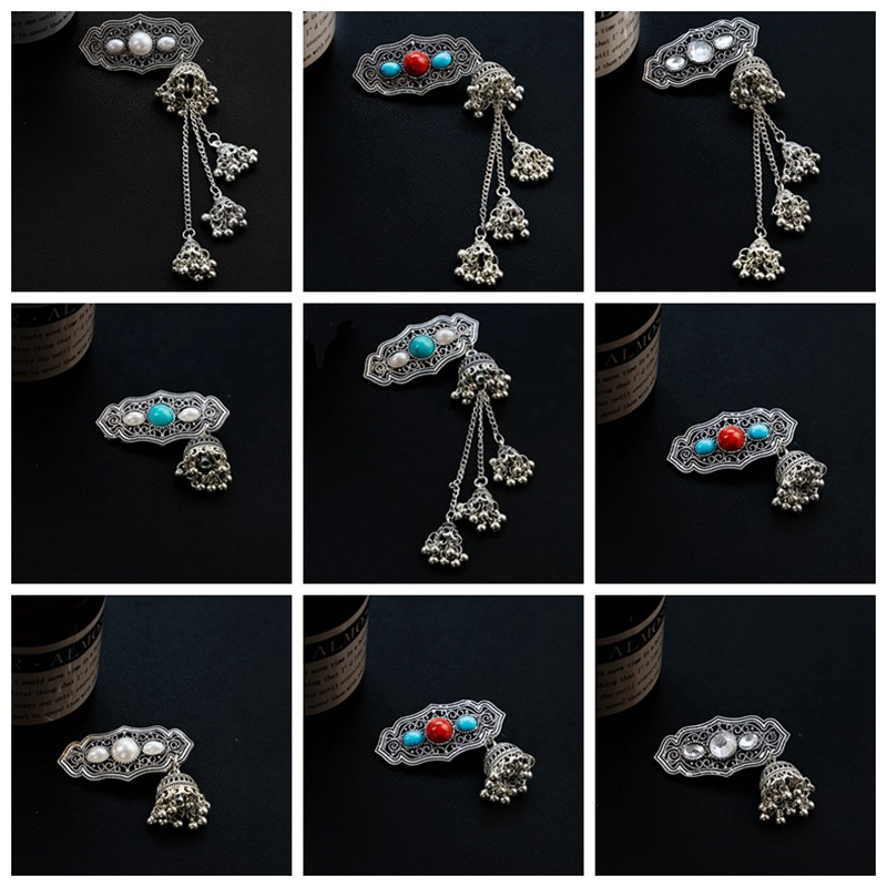新中式民族银色吊坠流苏发夹前额刘海夹发夹新款侧边夹子发卡头饰
