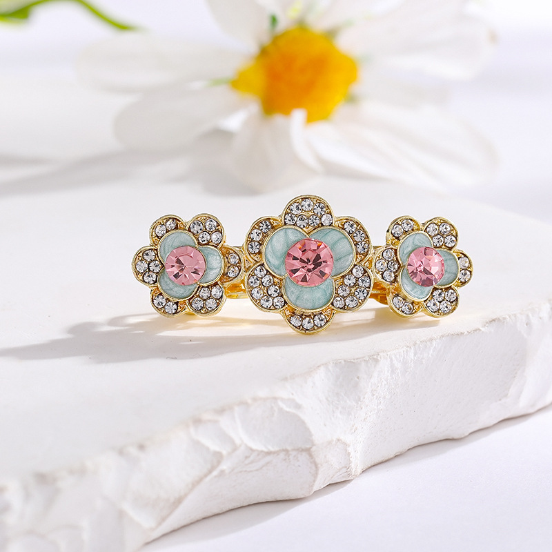 韓国の東大門で人気のヘアアクセサリー、上品で小さめなクリスタルフラワーの小さなダックビルクリップ、前髪クリップ、サイドクリップ、散髪クリップ