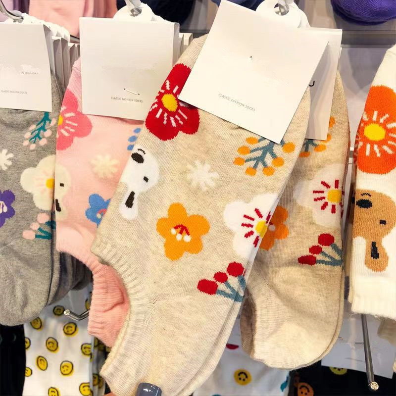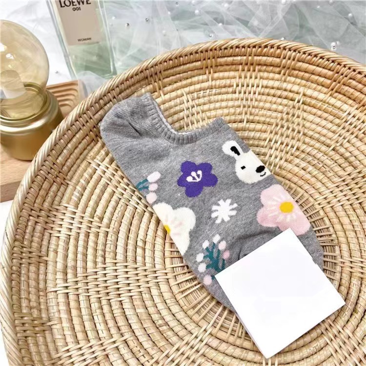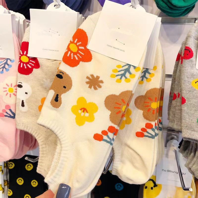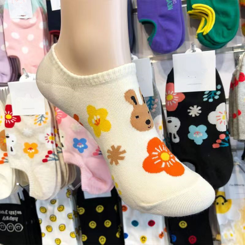 靴下の女性東大門の漫画の花の船の靴下の韓国のかわいいウサギの少女の浅い口の防脱の薄い綿の隠れた靴下