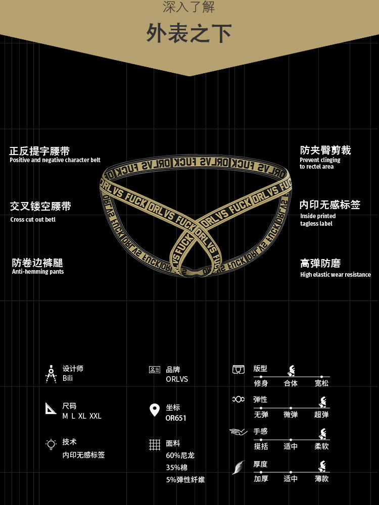 Orlvsは新しい現物の男性のt字のズボンの趣味のセクシーなt字のズボンの2丁の下着の男性のor651を代行します。