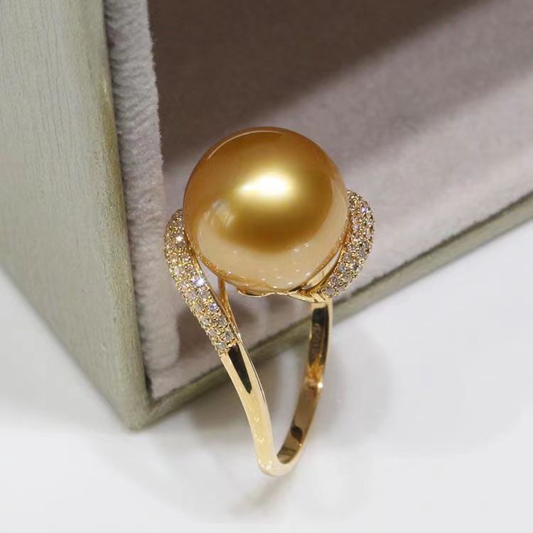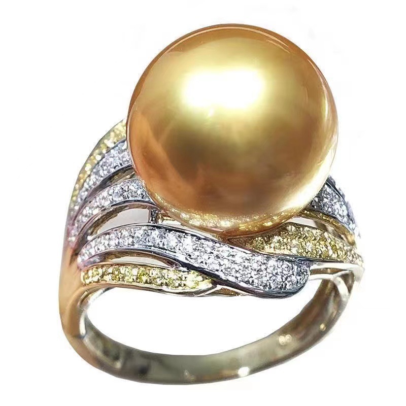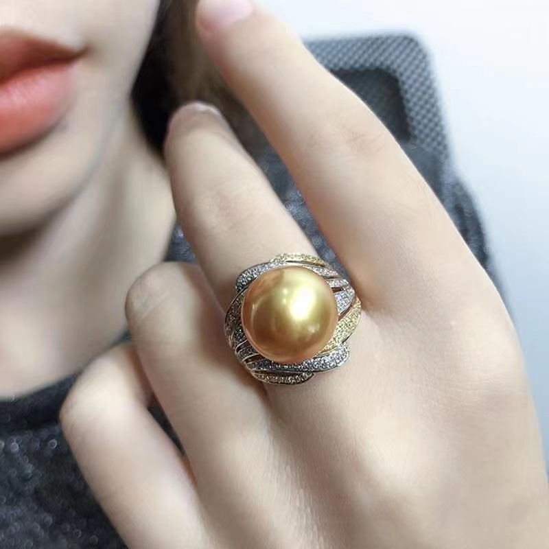 925銀の高貴な気品の金の南の海の金の玉の指輪の海水の濃い金色の真珠の戒子の正円の指の環の女性の百合