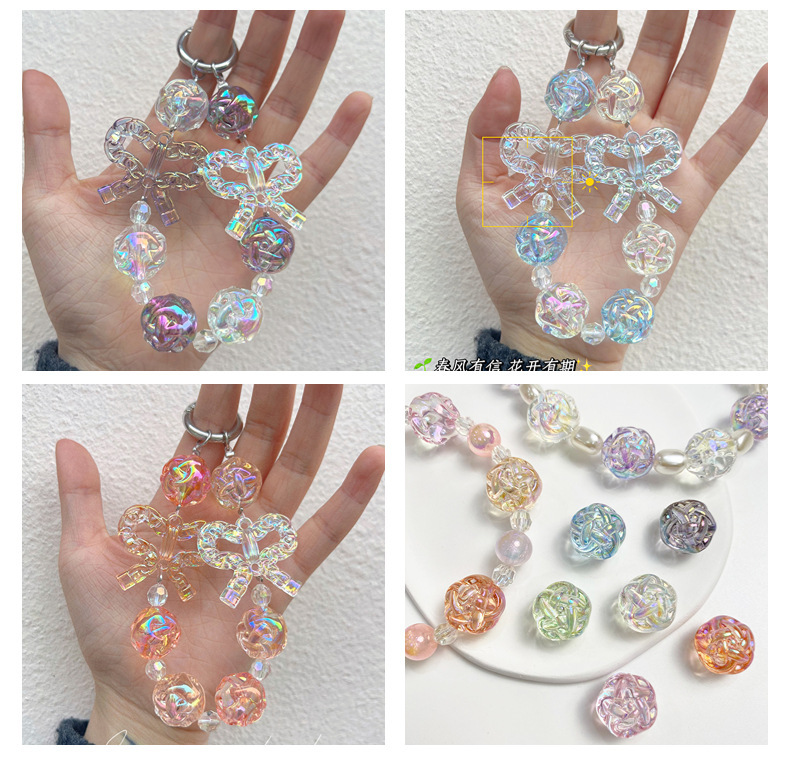 毛糸花球uvメッキ光沢高透極光ビーズdiy携帯電話チェーンビーズ材料アクセサリー散珠