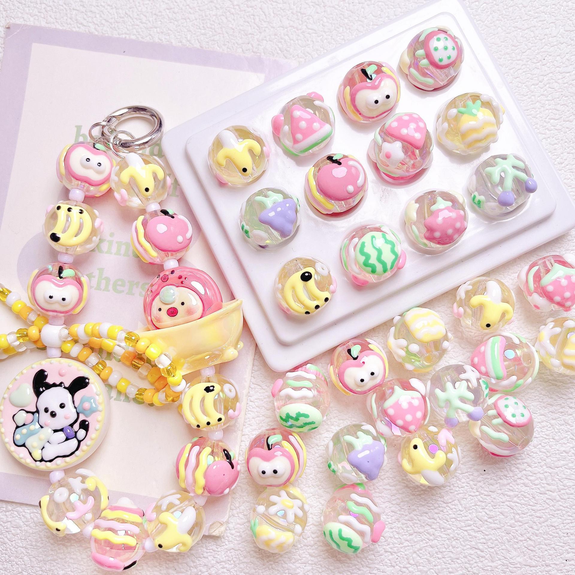 かわいい趣味いちごバナナ手描きストレートビーズdiy携帯電話チェーンキーホルダー材料散珠アクセサリー部品