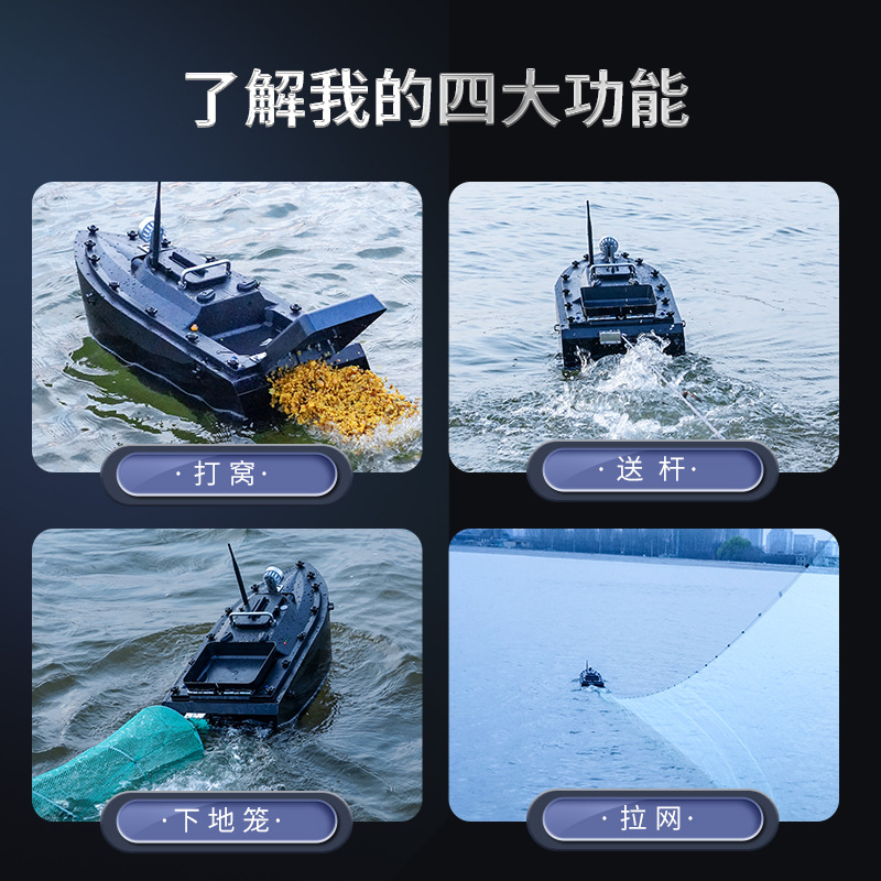 ハイパワーのリモコンで船を打ちます。新型知能自動gps測位釣り専用規格品24v専門の網引き船です。