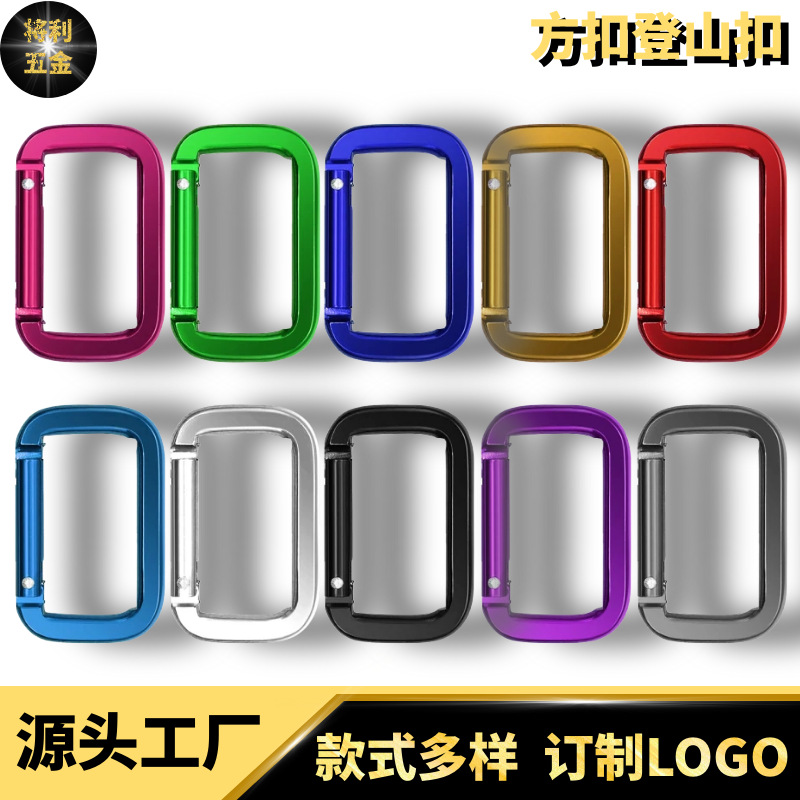 マルチカラーオプションの正方形の厚みのあるアルミニウム合金バックルフラット電気泳動マットブラックウォーターボトルバックルランウェイカラビナ