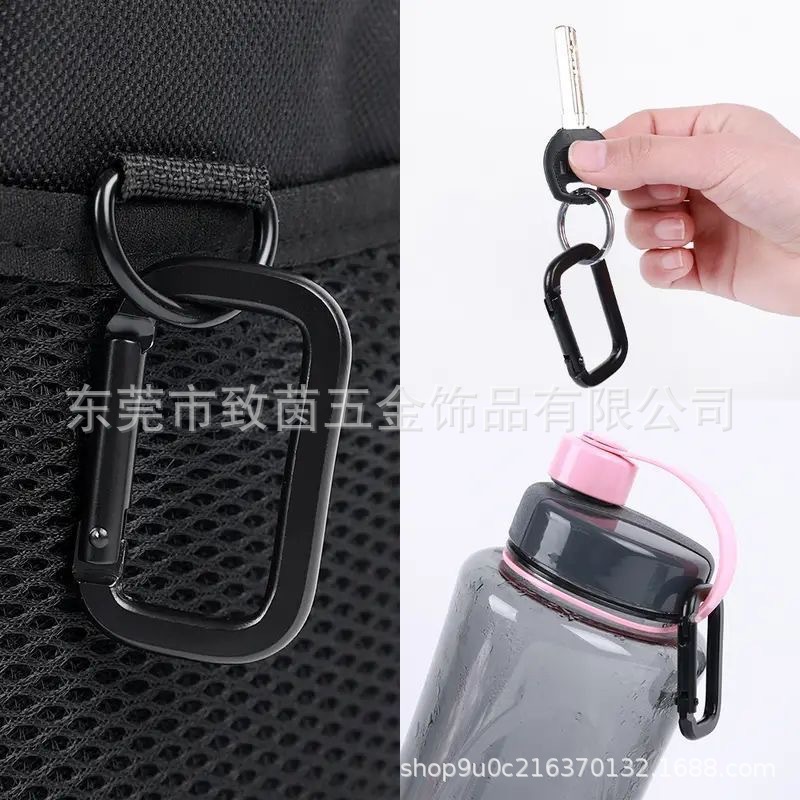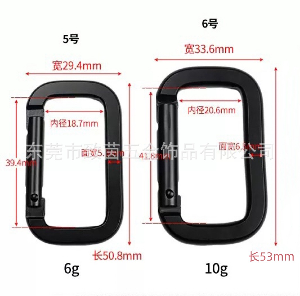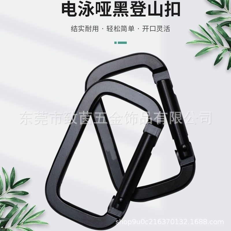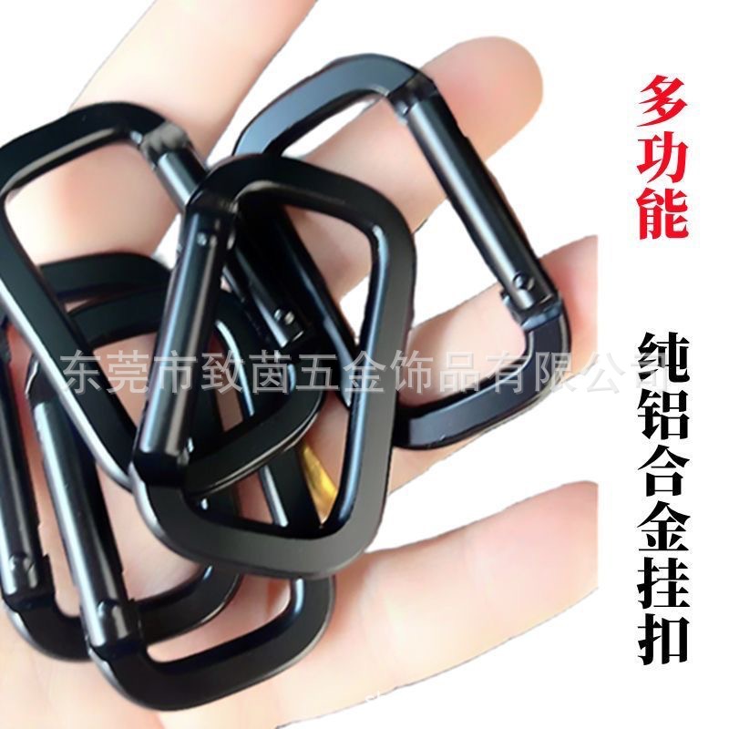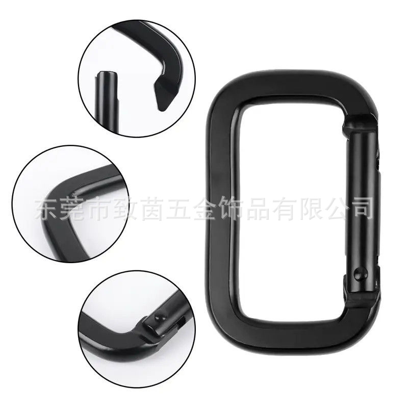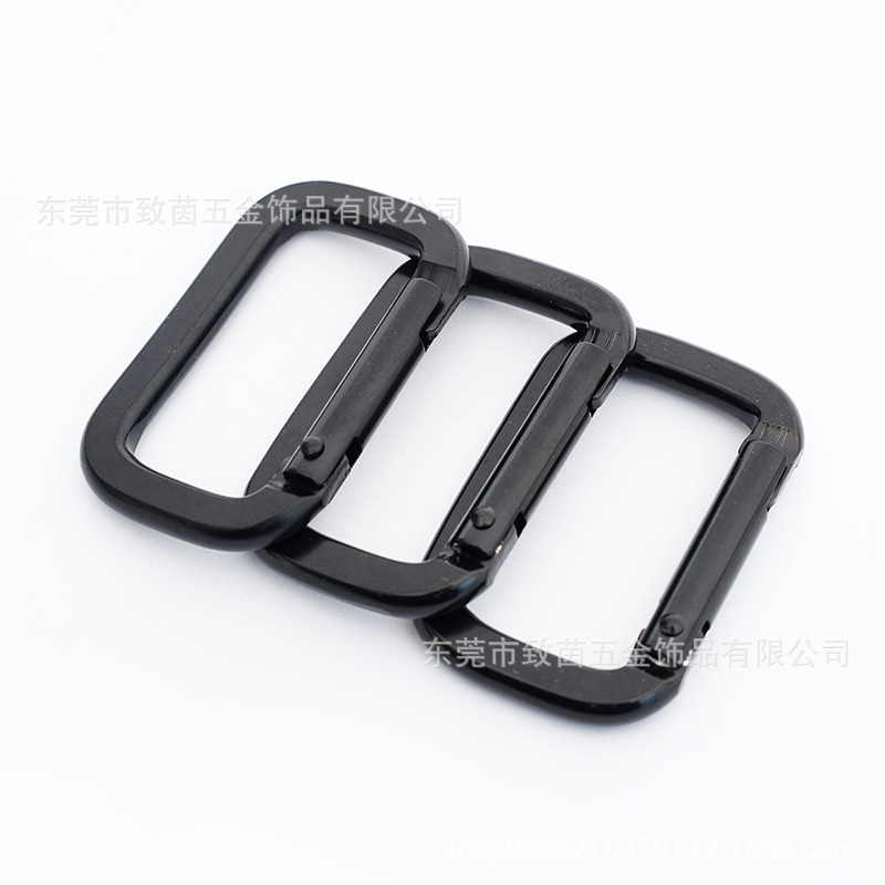 メーカー在庫あり5号角型厚型アルミ合金ハンギングバックル、圧縮電気泳動全黒カラーハイキングバックルフック