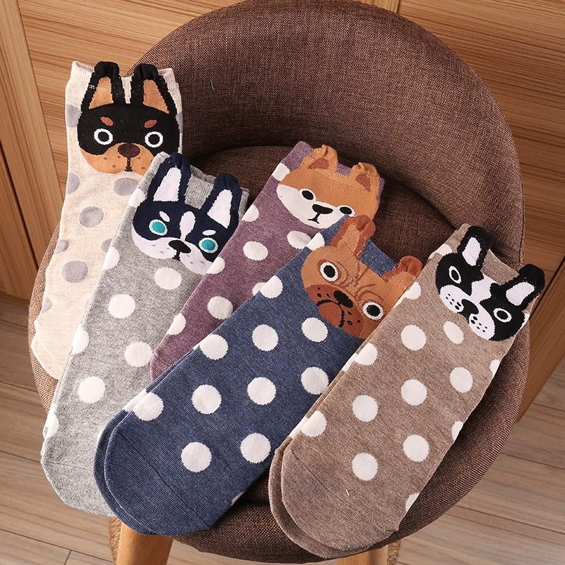 秋の新作韓国風可愛い甘い女子高生風靴下 日本風漫画犬コーギー柄女性用ミドル丈綿靴下