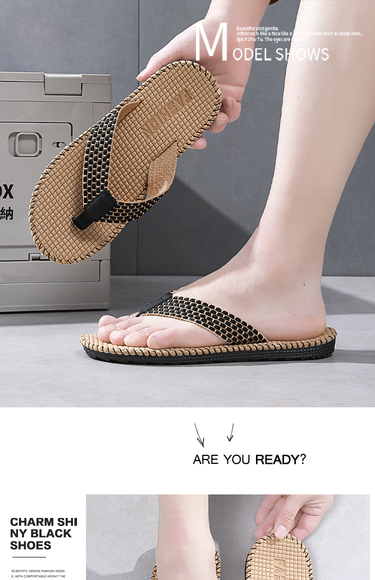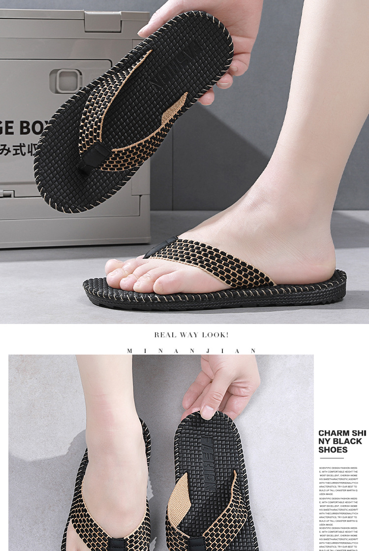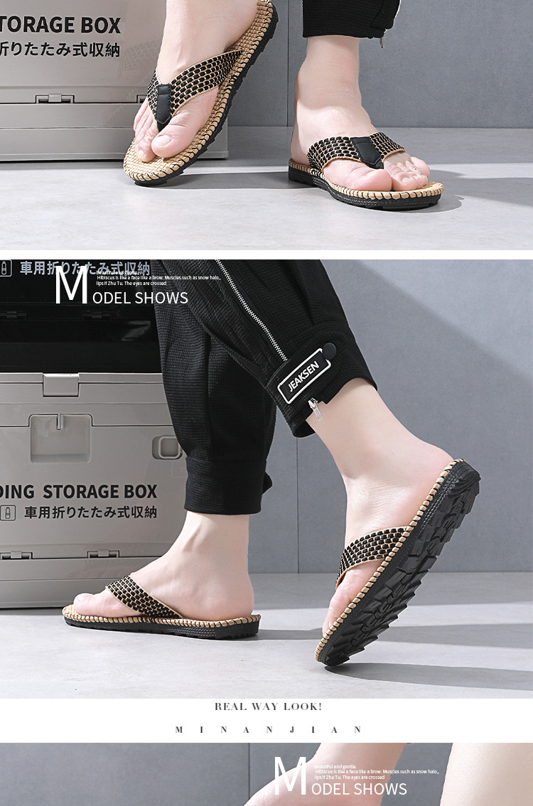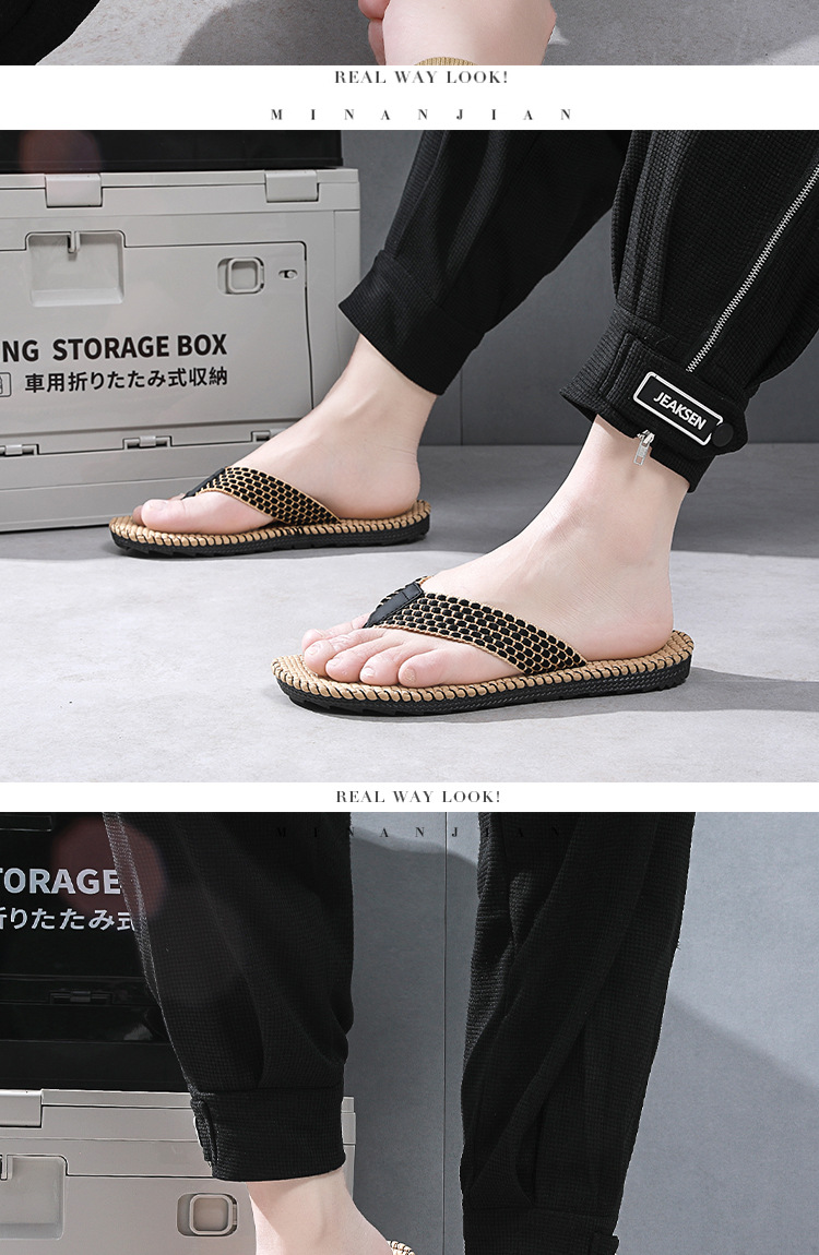 夏の男性はカジュアルで、滑りにくい耐摩耗性ベトナムの通気性スリッパを履いています。