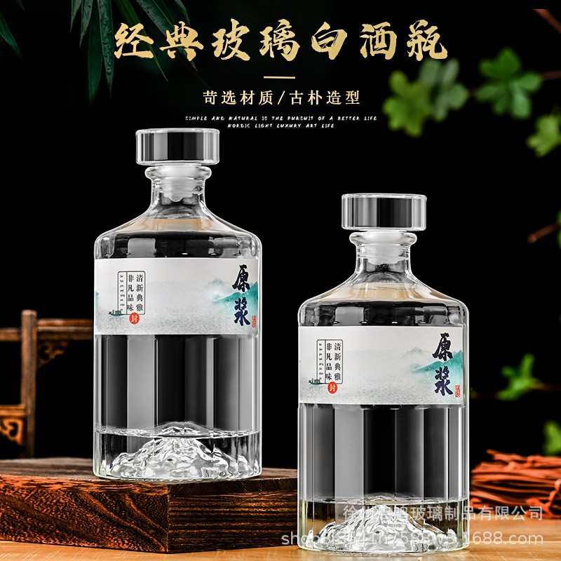 現物卸売り観山酒瓶透明ガラス白酒瓶500ml 1斤入結晶白料火山酒瓶空瓶