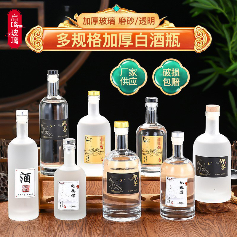 ウォッカ酒瓶透明蒙砂ガラス果酒瓶空瓶分注瓶密封氷酒瓶透明自醸造酒瓶