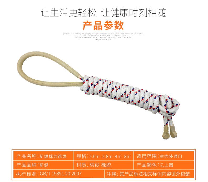 新健跳绳棉绳无柄专业2.6米4米5米8米10米耐磨多人橡胶学校训练