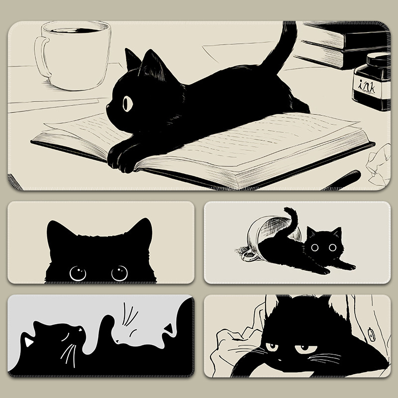コンピュータマウスパッド黒猫オフィステーブルパッド男性女の子かわいいコンピュータキーボードパッド漫画学生デスクマット