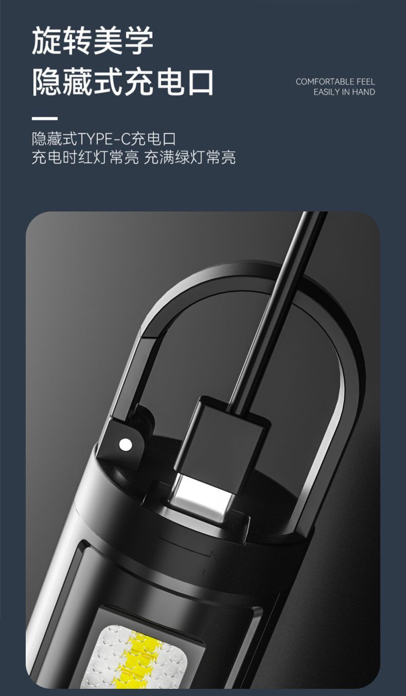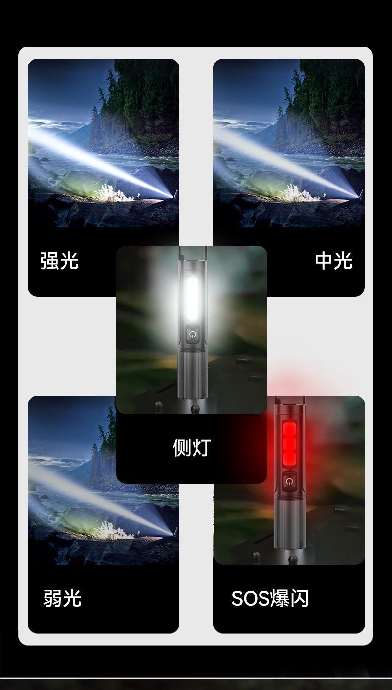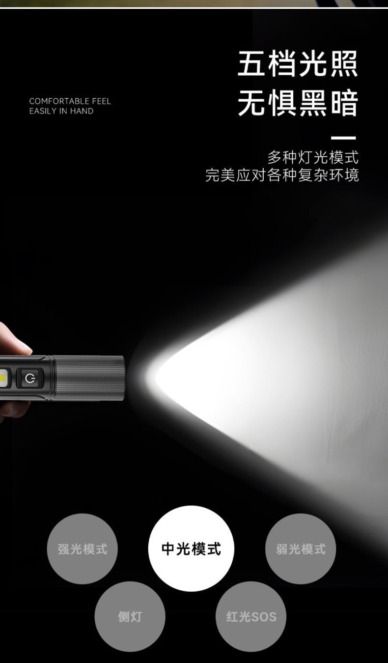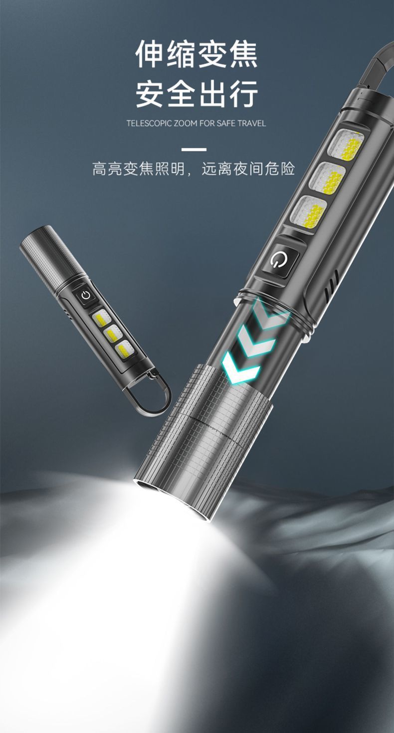 クロスボーダー新型緊急多機能遠射懐中電灯サイドライト屋外キャンプ強光懐中電灯卸売り