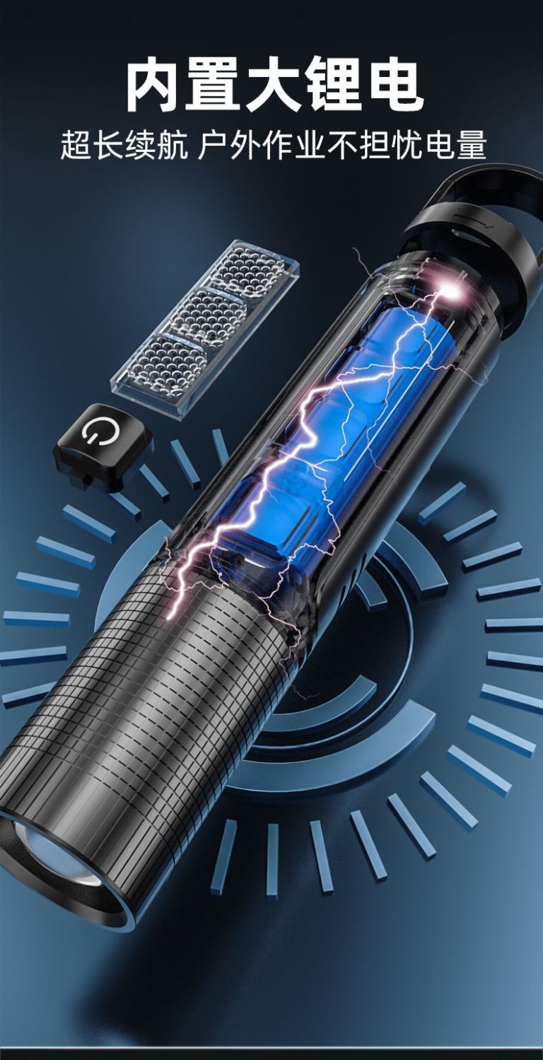 クロスボーダー起爆led強光懐中電灯屋外遠射USB充電伸縮焦点調整家庭用緊急懐中電灯