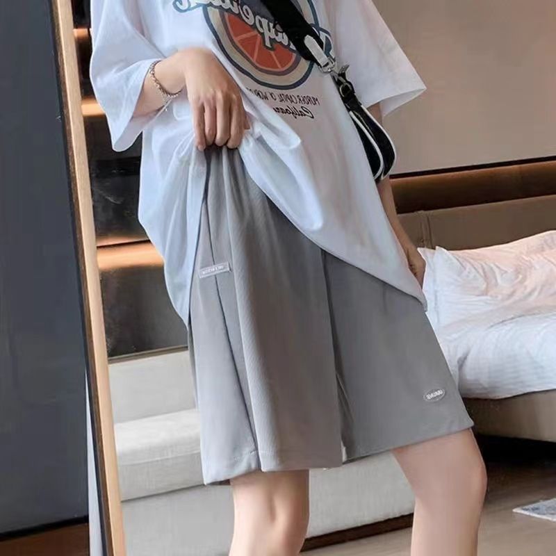 アイスシルク ショートパンツ レディース 夏 薄手 ゆったり ハイウエスト ストレート ミッドパンツ カジュアル ワイドレッグパンツ スポーツ 5点式パンツ 背が高く見える