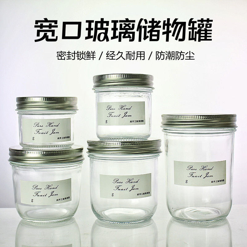 大口ガラス瓶蜂蜜缶詰ジャムチリビーフジャムボトル包装空ボトル密封食品グレード高温耐性