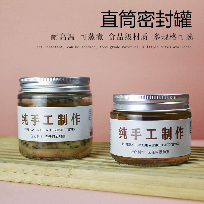 食品級直筒丸瓶缶詰ガラス瓶にカプサイシン油蜂蜜漬物瓶を入れて高温に耐えて密封缶を厚くする