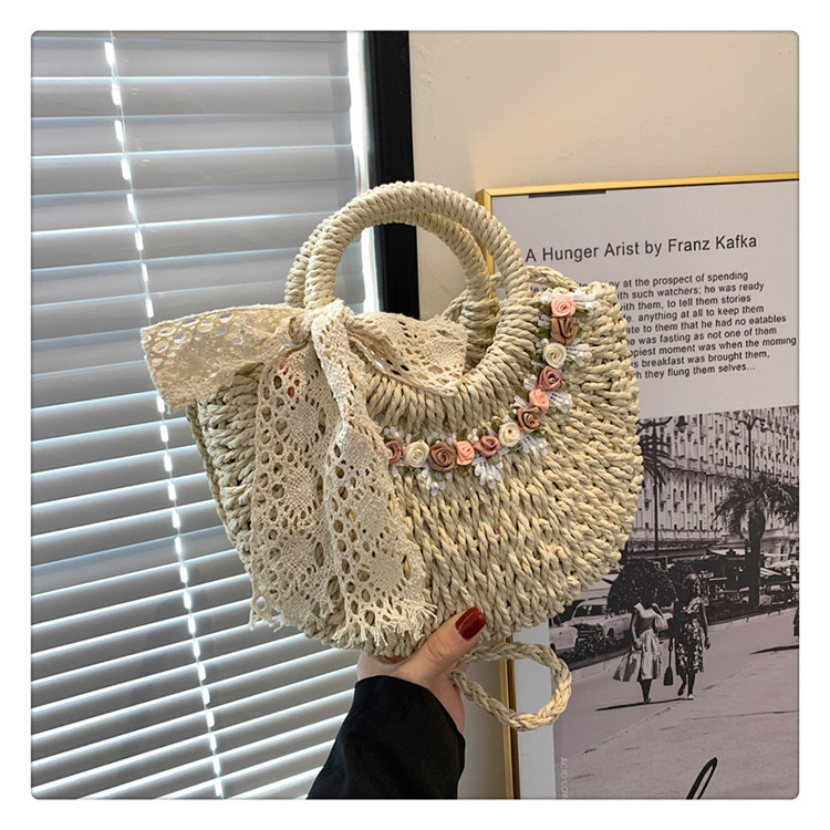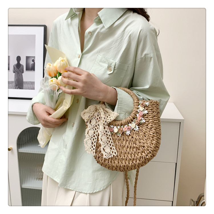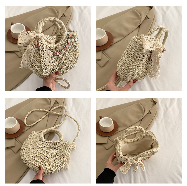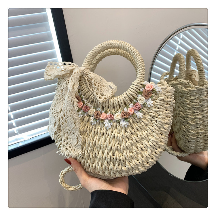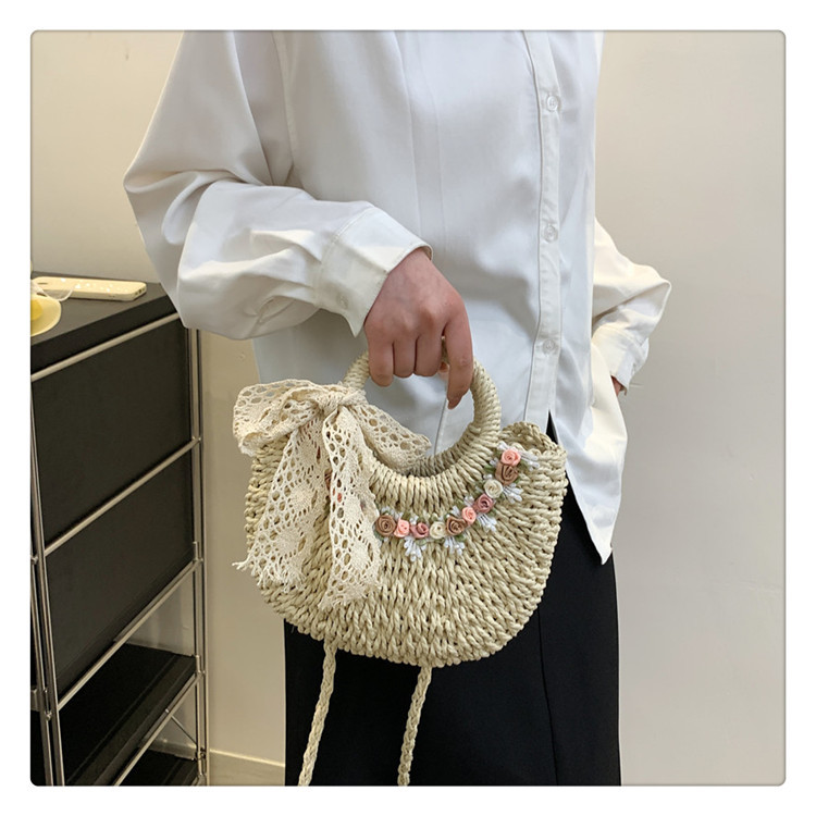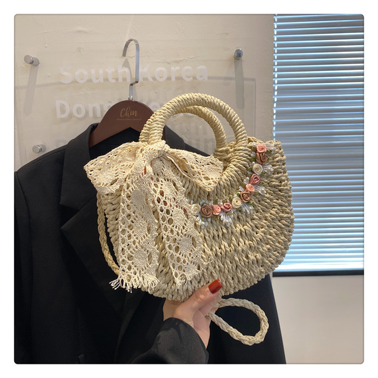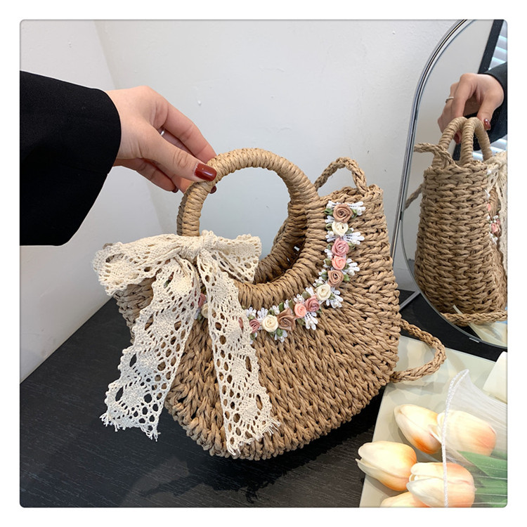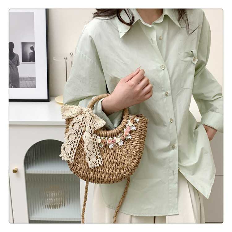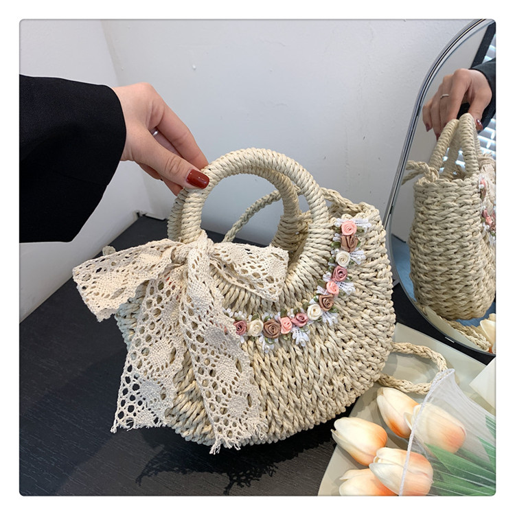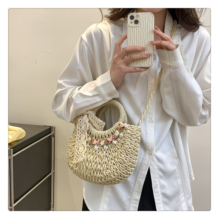 小さな生花織バッグ 2024 新しい海辺の休暇ビーチショルダーバッグポータブルわら野菜バスケットバッグ