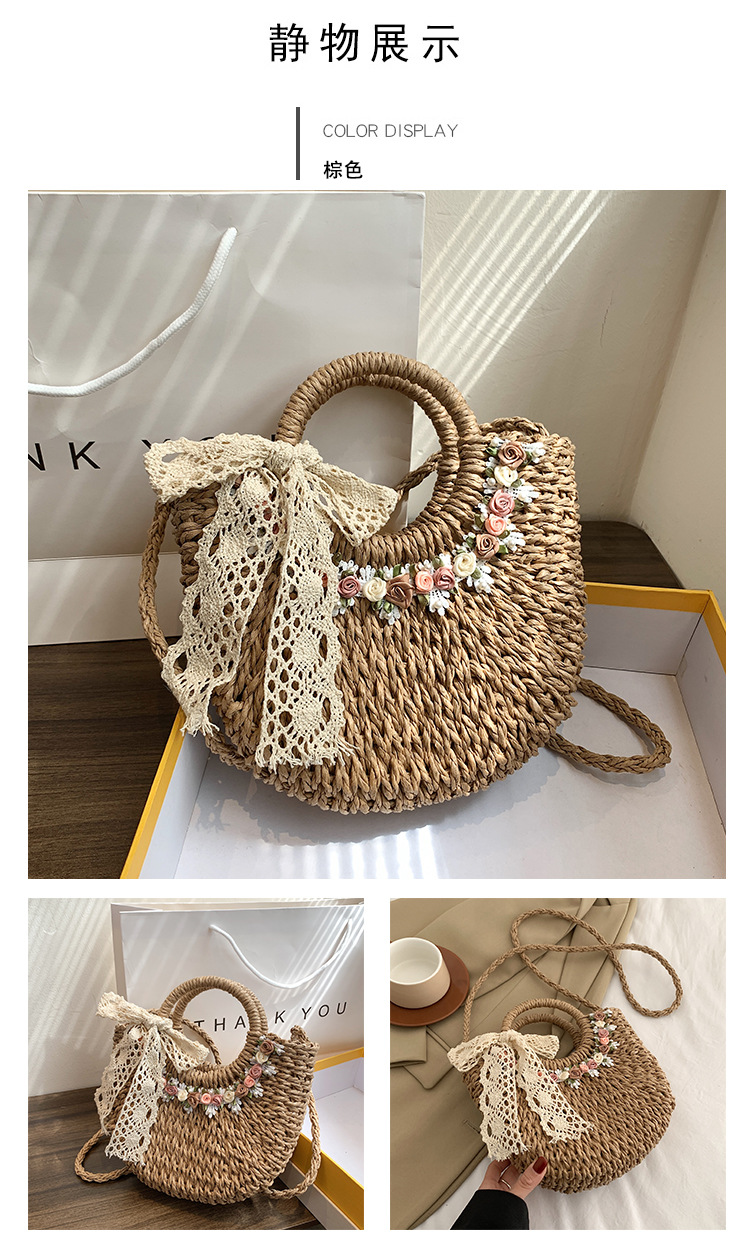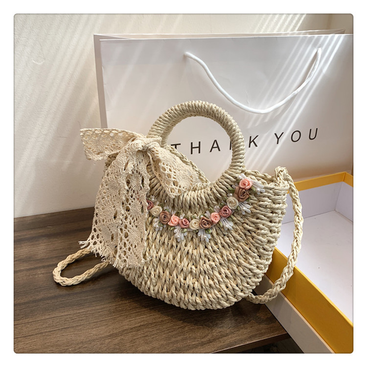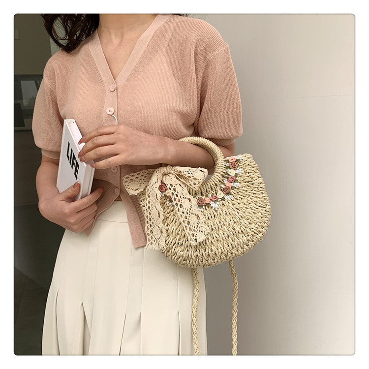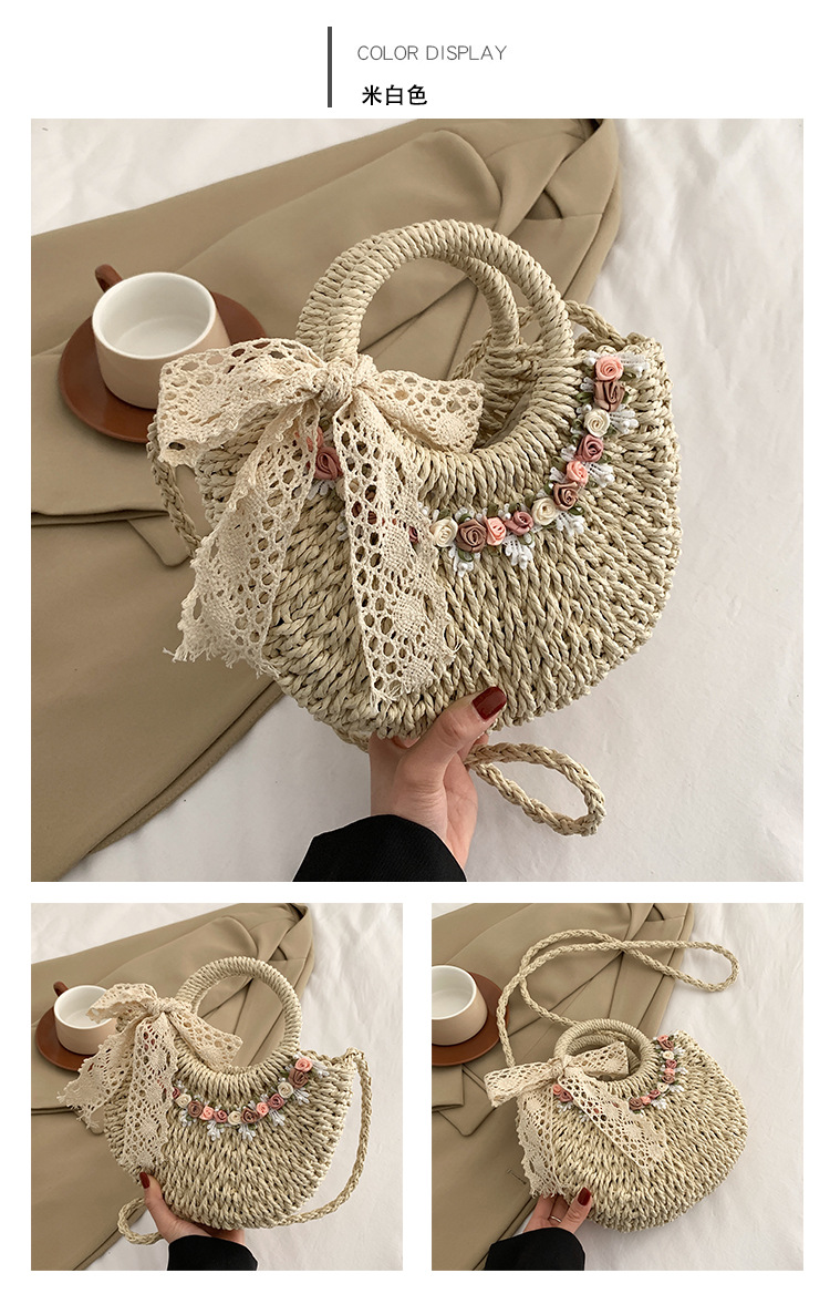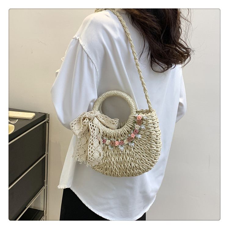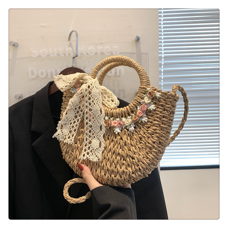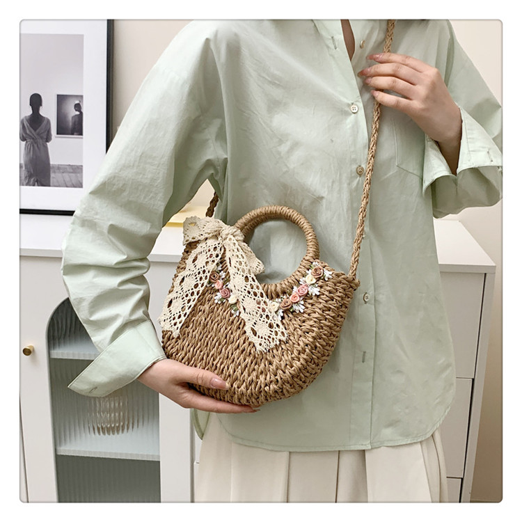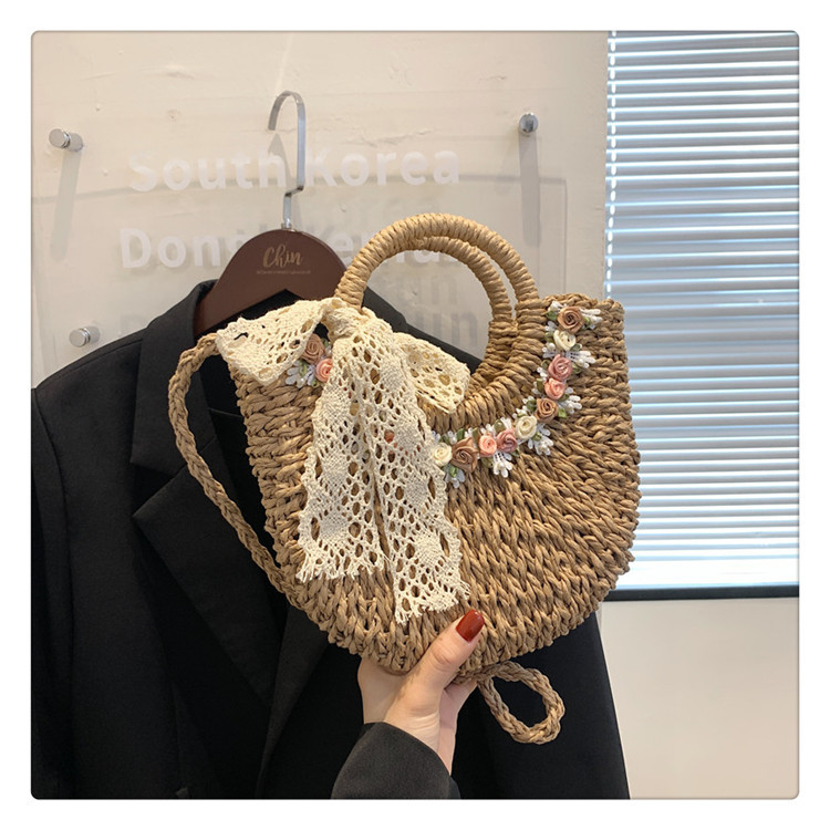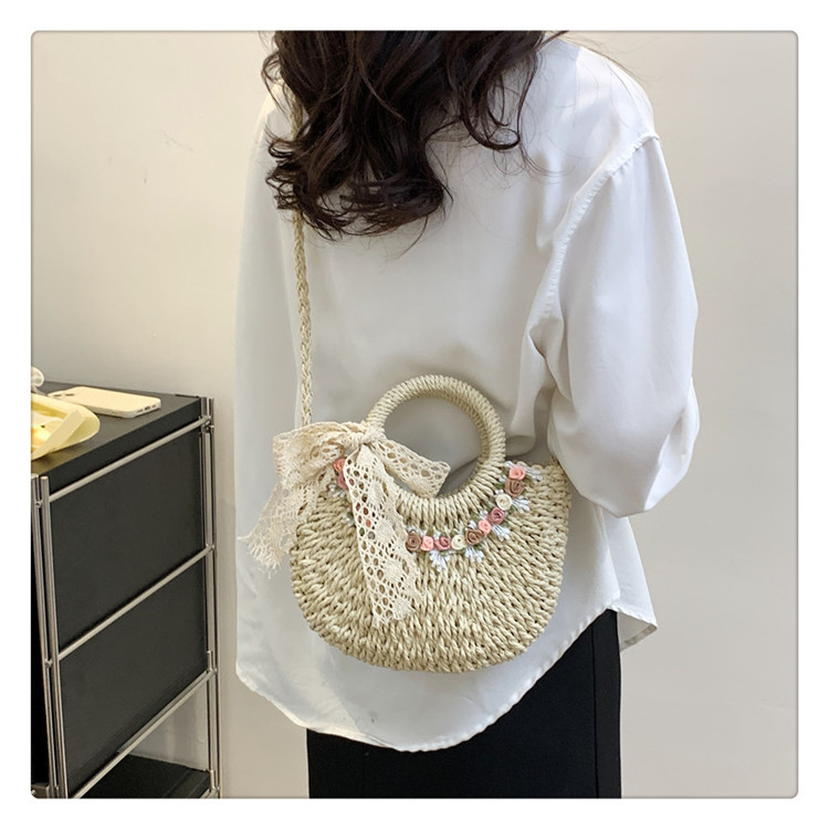 小さな生花織バッグ 2024 新しい海辺の休暇ビーチショルダーバッグポータブルわら野菜バスケットバッグ