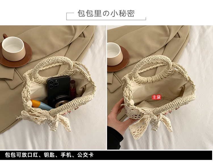 海辺のリゾートビーチ編みバッグ女性2024新透かし編みニットハンドバッグ大容量シングル肩脇下バッグ