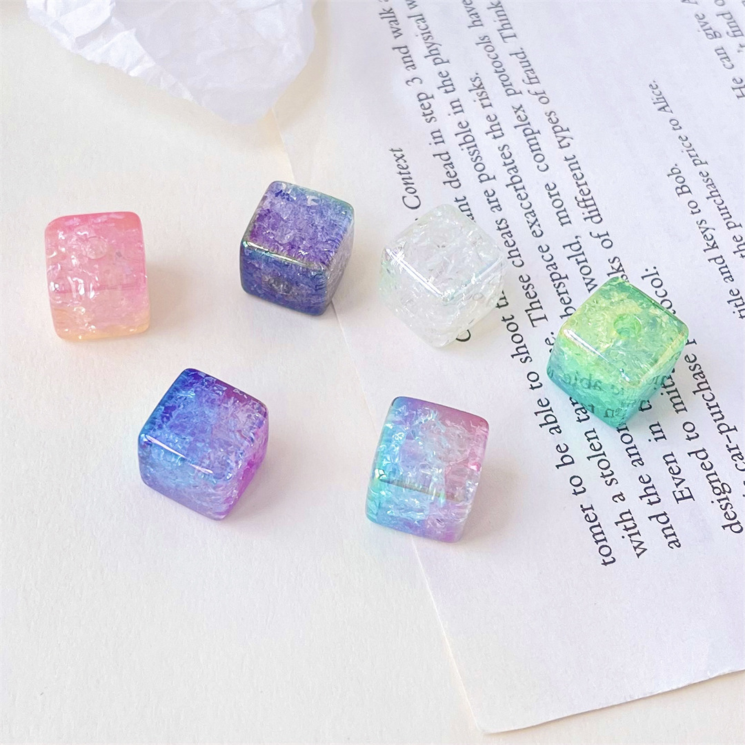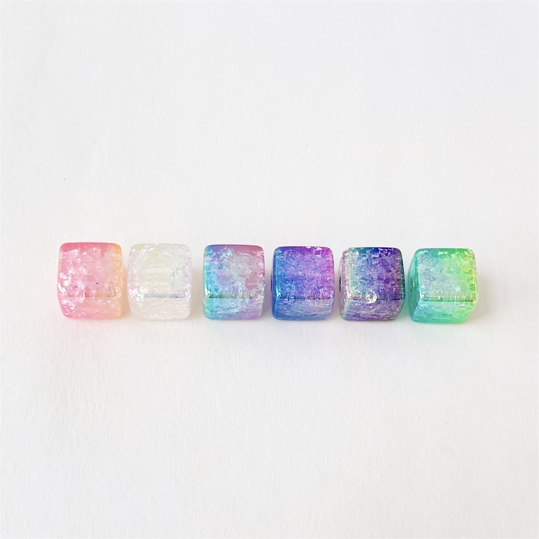 陳明のアクリルのまっすぐな穴の四角のグラデーションの四角形の玉のまぶしい色の爆裂の玉のdiyの鍵の数珠の部品は卸売りします。