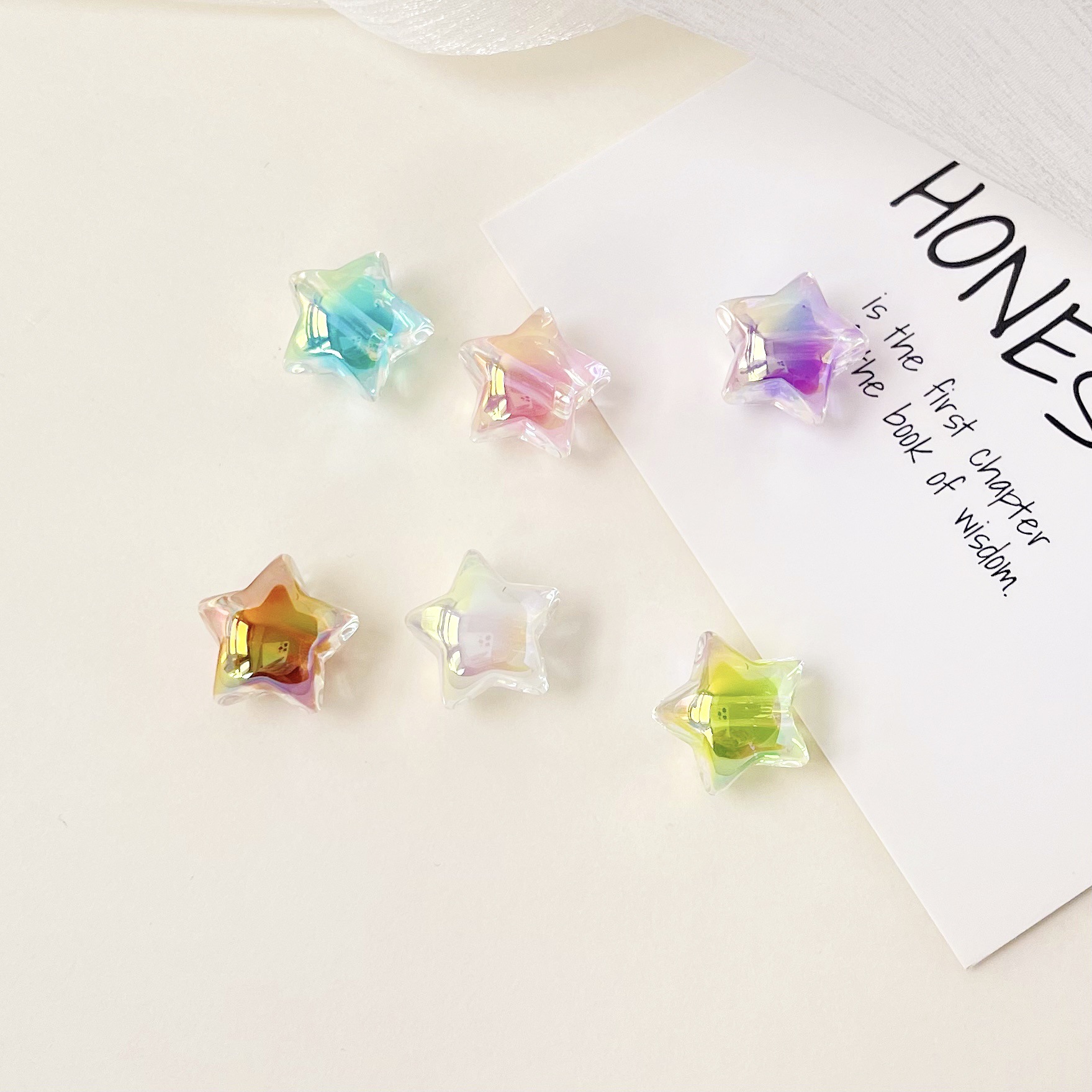 陳明アクリル直孔切断面星グラデーション五角星自慢爆裂珠diy鍵ビーズ部品