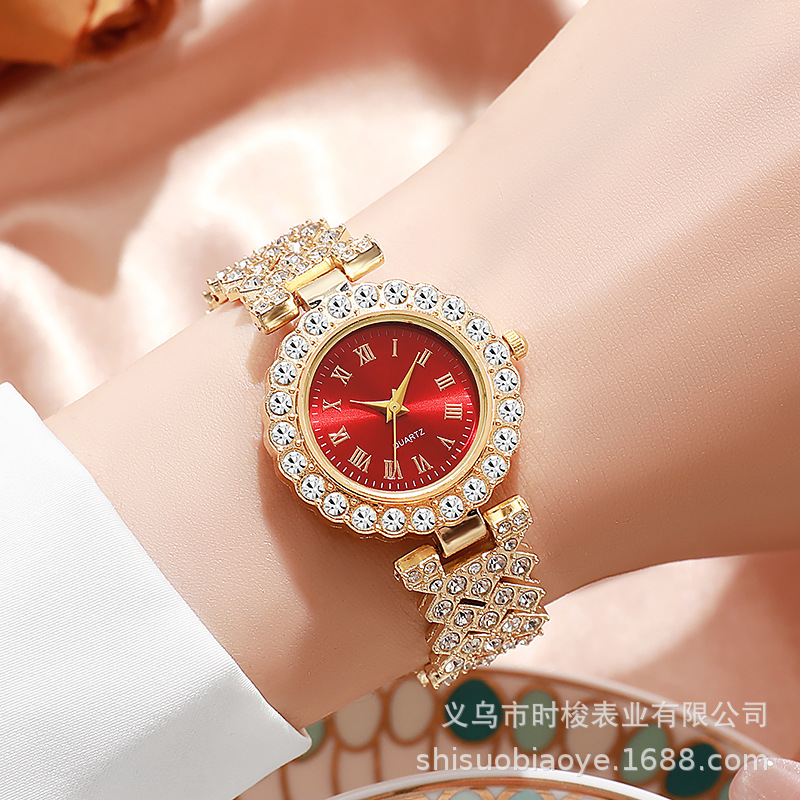 2025新款时尚罗马纹镶钻女士手表女表石英表手链女款腕表厂家现货