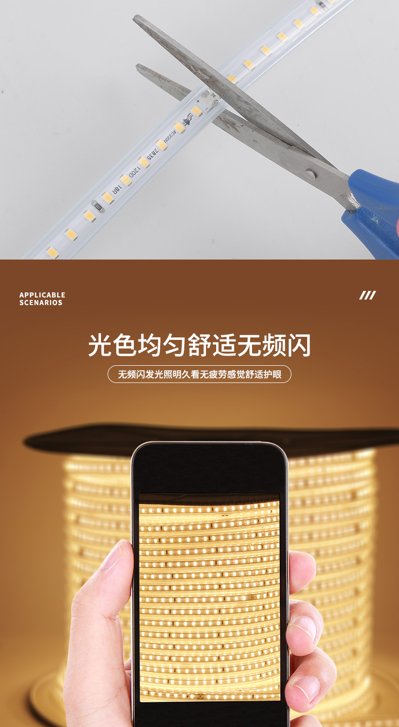 220v高電圧超高輝度LEDライトストリップ、屋外防水、住宅装飾、工事現場照明、広告雰囲気、ソフトライトストリップ、高輝度