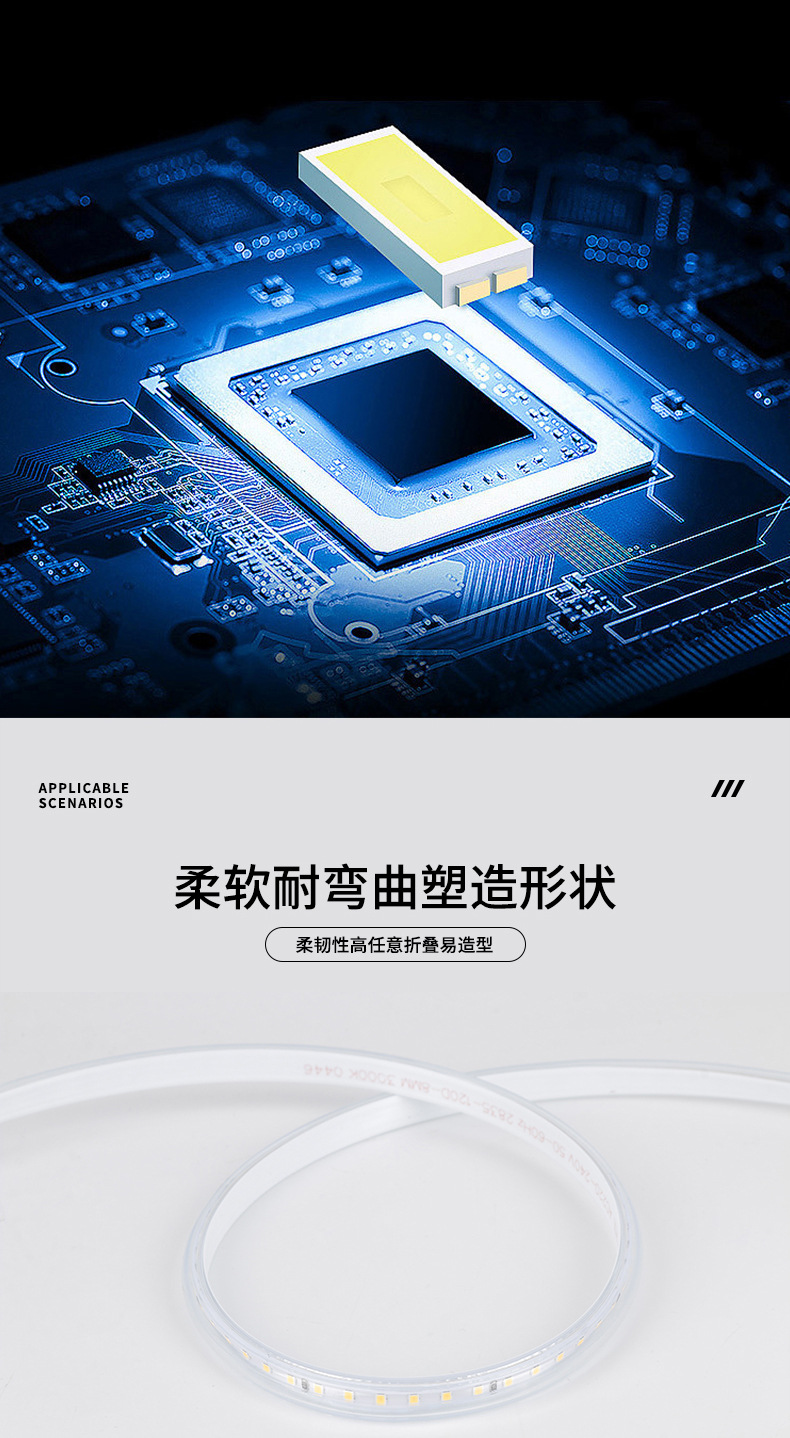 LED高压贴片无导线220V120珠高亮户外防水防水家装工程照明灯带