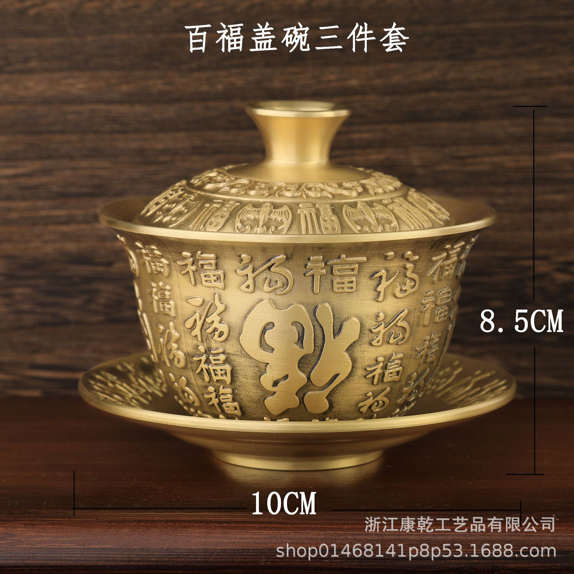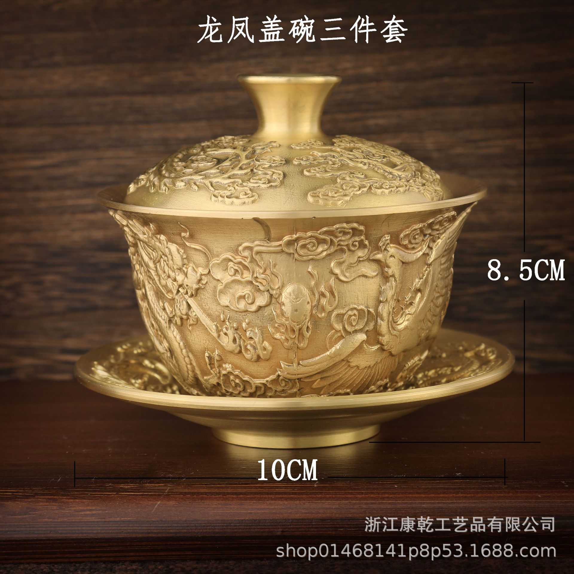 銅工芸品装飾品茶カバーボウル 3 ピースリビングルームレリーフドラゴンとフェニックス Baifu カバーボウル銅製