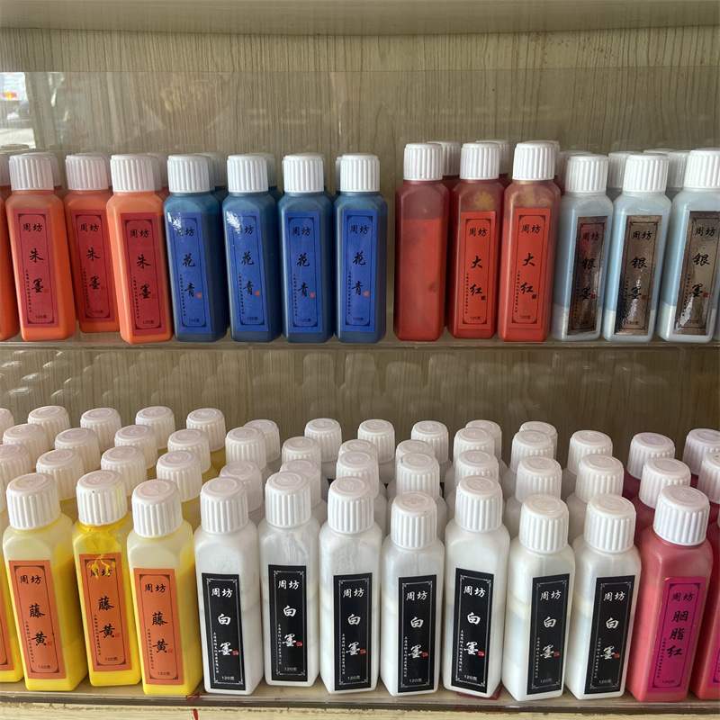 周坊カラー墨汁金色銀色国画書道用品対聯写経カラー赤色瓶墨汁