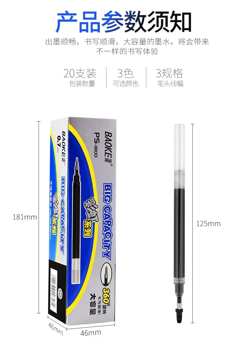 Baoke 1800 レインボーシリーズ大容量リフィル 0.5/0.7/1.0 ミリメートルゲルペン署名ペンリフィル卸売