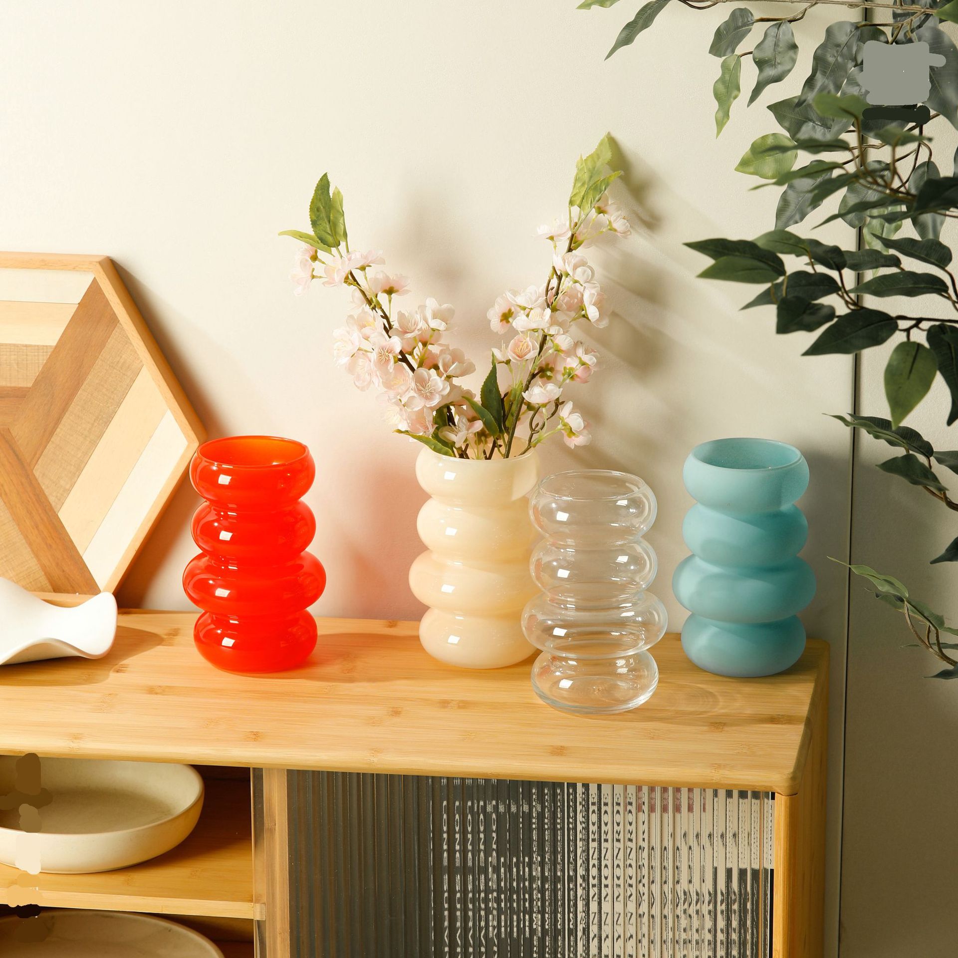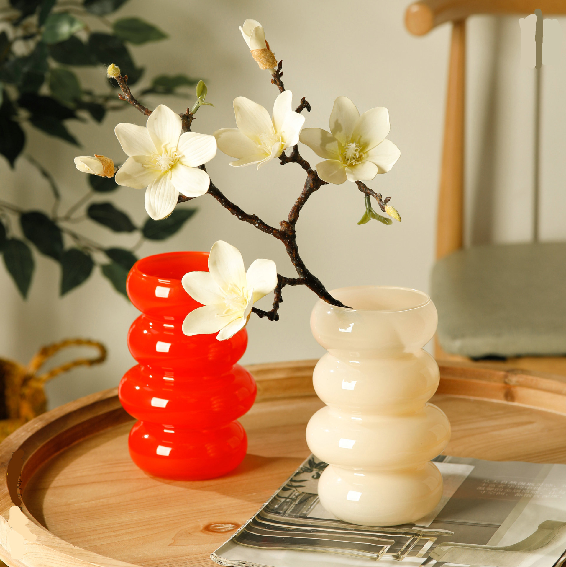 クリーム風ガラス花瓶置物リビング生け花透明水養高級感ins装飾ネット赤小衆花瓶