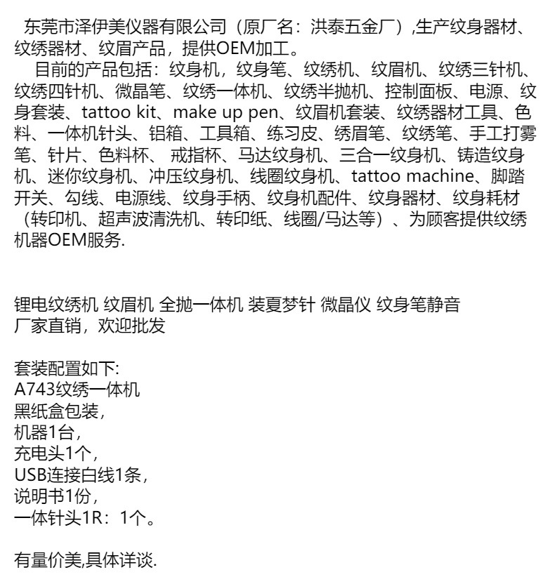 リチウム電気刺繍機電池眉毛機全投げ一体機夏mtsm夢針電動導入器刺青ペン