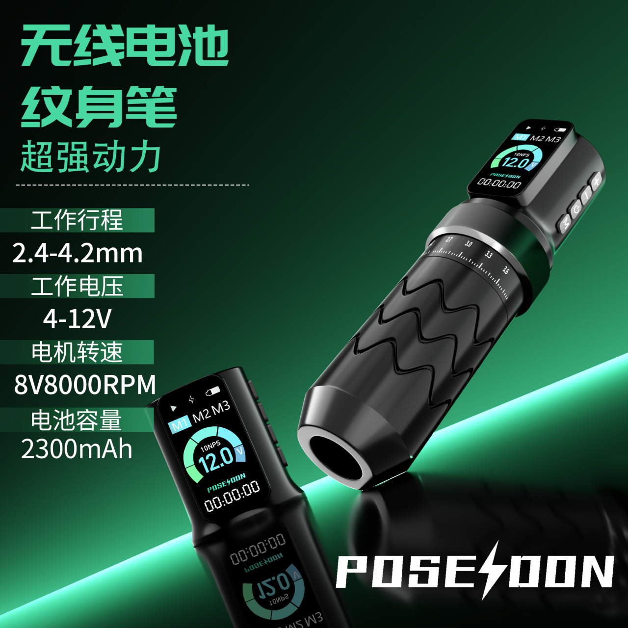 波塞冬新款无线纹身机 可调行程纹身笔 割线打雾一体机HM145跨境