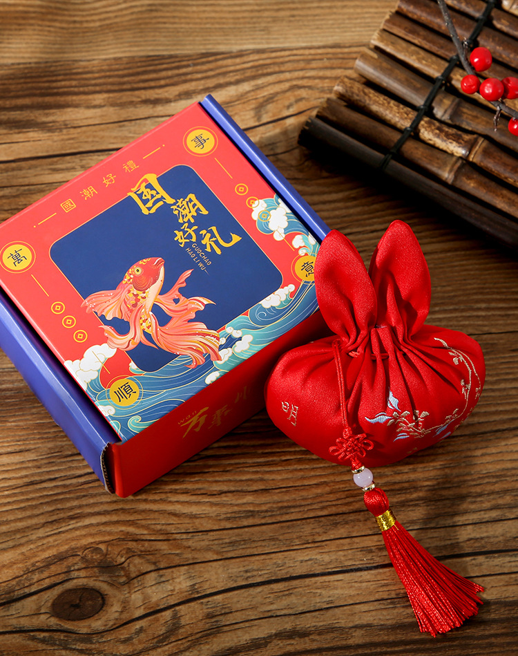 古代風の小袋、空袋、福袋、首吊りお守り袋、胎毛携帯用財布、車のペンダント、赤いヒント袋