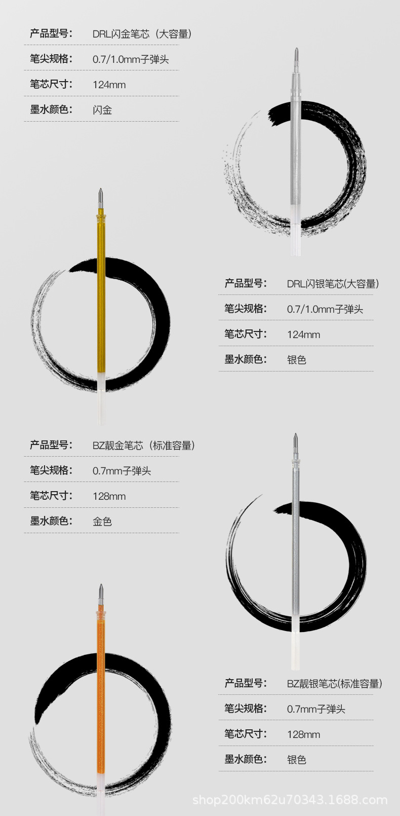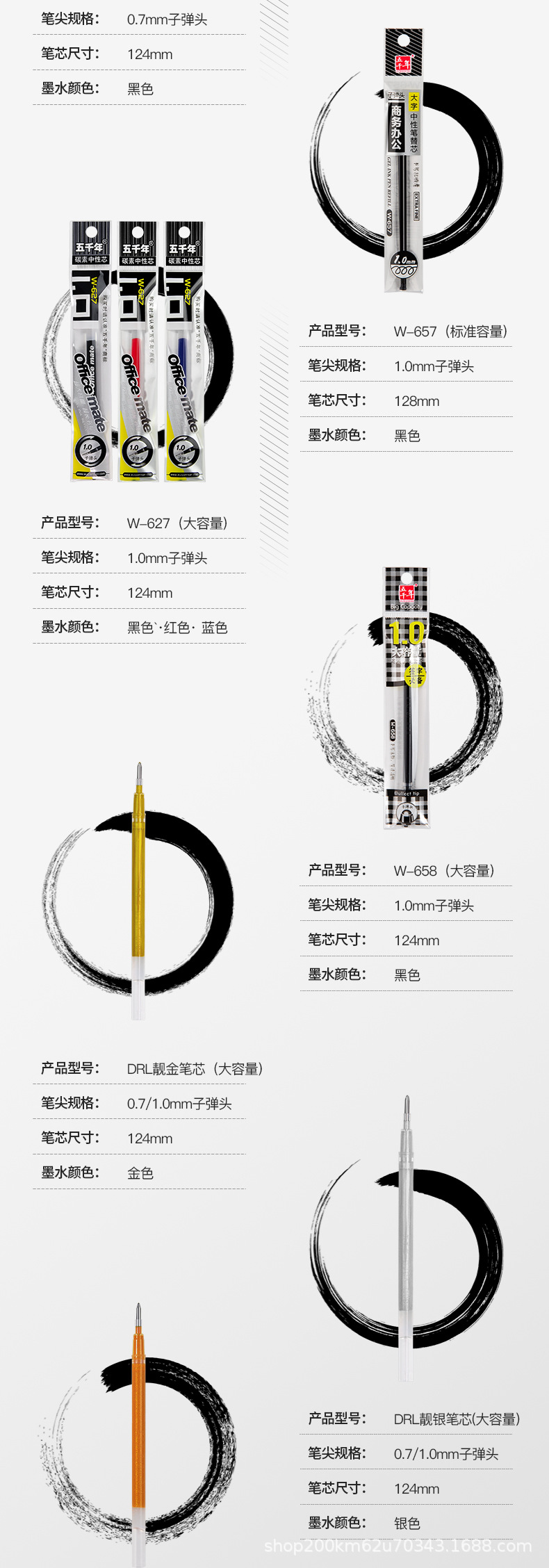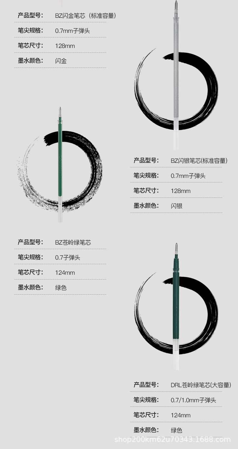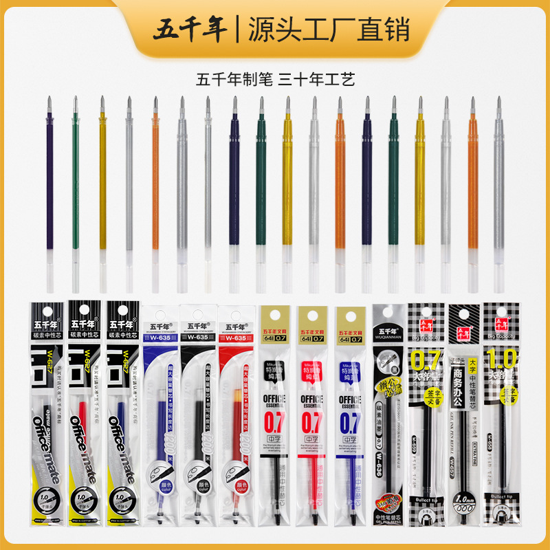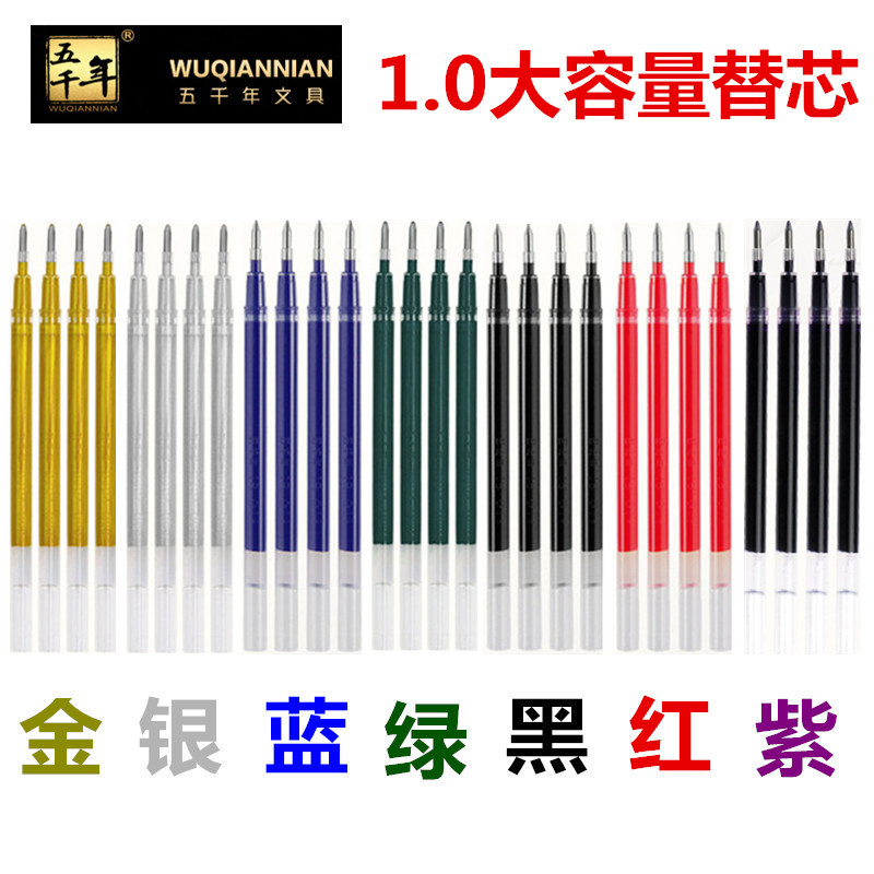五千年加太ペン芯中性ペン芯緑紫青0.7mm1.0mm黒赤大容量弾丸ヘッド