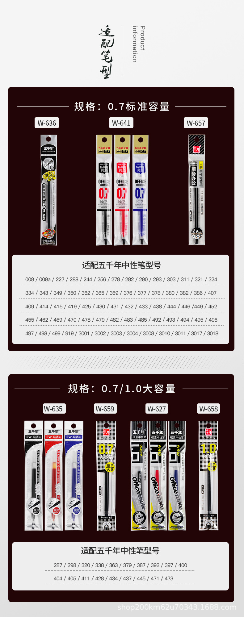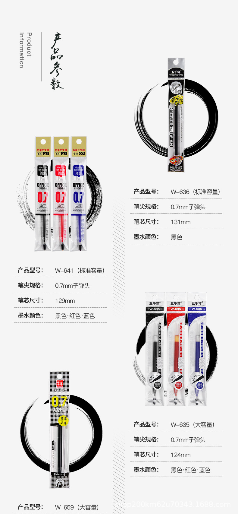 五千年w498大容量0.7mm中性ペンオフィス炭素ビジネス硬筆書道ペン練習字サインペン
