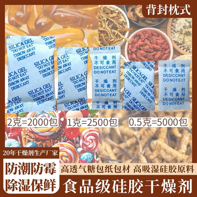 食品小包干燥剂硅胶0.5/1/2克药品糖果坚果保健品防潮除湿剂厂家