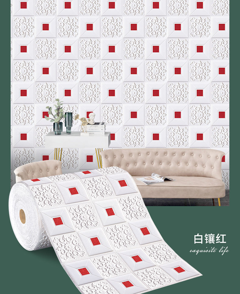 天井の壁紙は自己接着して家庭用防水防湿ネットの赤い壁を改造して醜い神器のリフォームの3d立体の壁を貼ります。